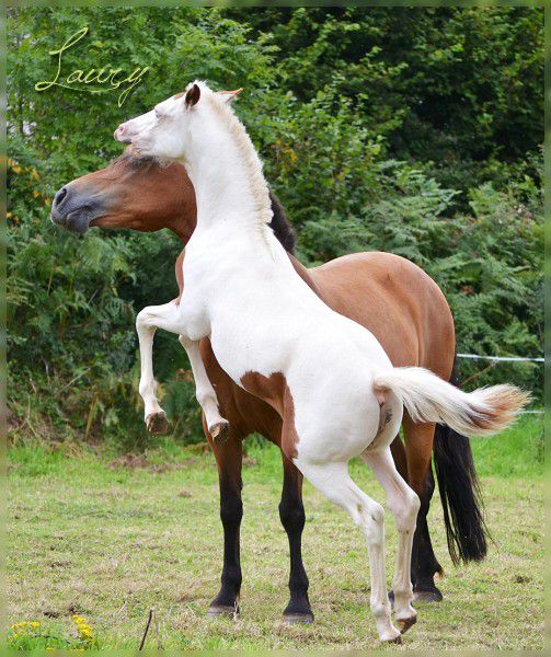 | Dire merci | qu'ils sont beaux tout ces poulichonsss il a une sacrée classe ton poulain sultanjoy ! j'aime bcp Belem avec ces crins coupés, elle est vraiment toute jolie. Billy, je suis jalouse, j'avais mis ma julent à la saillie et ça n'a malheureusement pas marché, donc je n'ai pas eu de petit pie... ![]() et Paulyne, bonne chance pour le transport ![]() sinon pour donner quelques nouvelles de Believe.... contre toute attente, et à l'inverse de ce que osteo, Mf et veto pensaient.... ça se redresse. Très lentement mais surement. On est parti d'une déviation (hyperlaxitude enfin je suis pas technicienne donc dur dur d'expliquer tout ça...) des epaules - genoux - boulet. Et la elle est quasiment entièrement redressée des épaules, il y a bcp de mieux sur les genoux... restent les boulets. Mais tout ça évolue positivement, on ne pouvait espérer mieux. Reste a priori a bien bien gérer le suivi de ses petits pieds (pour la parée, c'est une horreur...) mais au moins, on n'est plus totalement impuissant. |