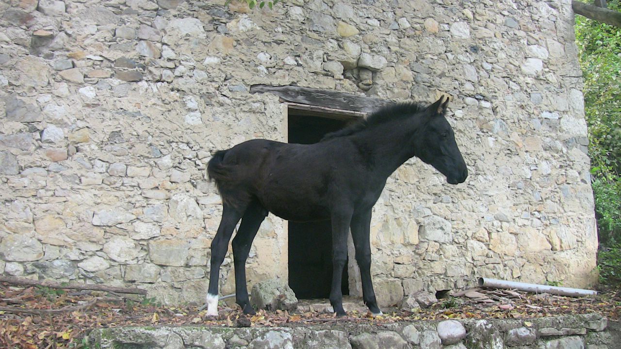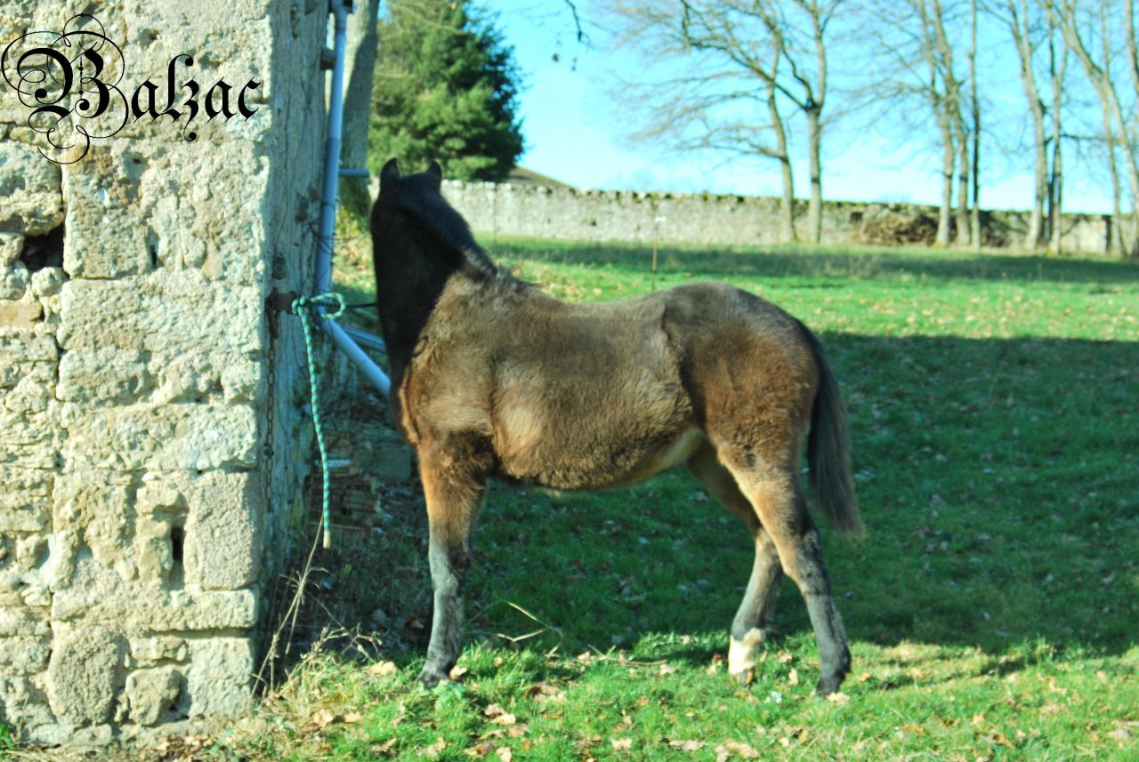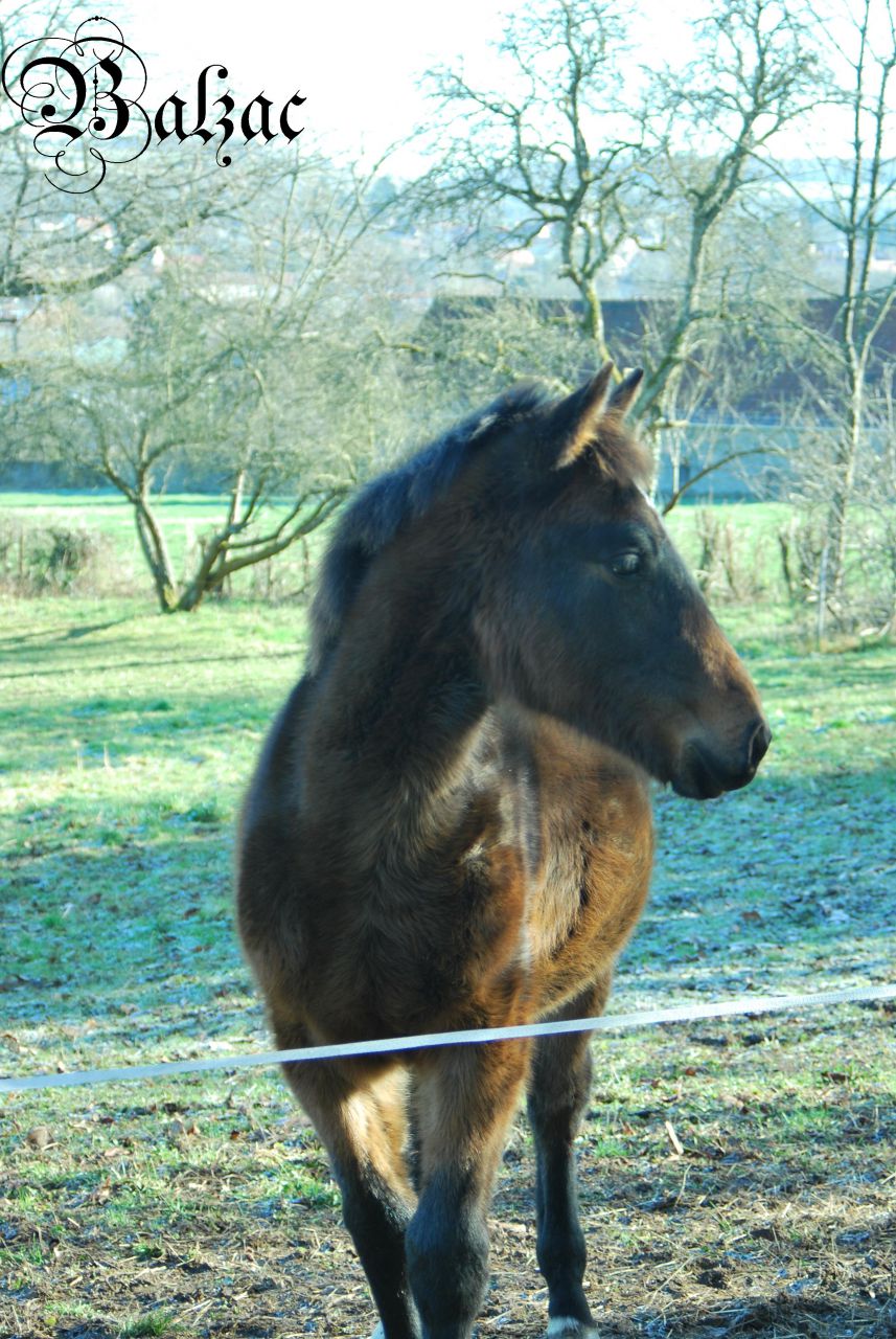 | Dire merci | Bonjour tout le monde! Des nouvelles de Balzac, enfin! Tout va bien ! Monsieur est sevré depuis le 20 décembre (donc presque pour ses 7 mois) Pour lui ça lui a été très bien, il est avec une vieille ponette qui a des problèmes pour se déplacer (à cause d'une fourbure aggravée, mal soignée et répétée etc.) Elle lui apprend un peu le respect au pauvre loulou. Mutine (la maman) a manqué faire une mammite, on a eu peur... mais on a réussi a récupérer le coup. Balzac a donc 8 mois demain, il a du stopper se croissance avec le froid parce que j'ai l'impression qu'il ne grandit plus tellement en ce moment. Je vous donne deux trois photos que vous puissiez voir comme il se developpe. le mois dernier il n'était transcendant, mais là il s'arrange, sa tête me plait de plus en plus, il ressemble vraiment a sa maman! ![]() ![]() ![]() |