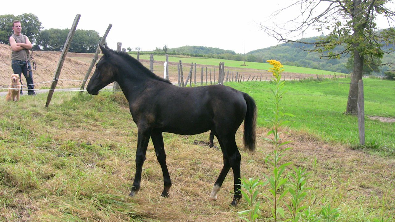 | Dire merci | Qui c'est fait avoir ? Parce que Balzac n'a pas d'envie, il est pas chaud. je passais des moments a l'observer avant que les deux soient séparés (en fait .. il court partout, et comme la ponette ne peut pas faire plus de deux pas il se cabre et lui fonce dans la croupe en courant, et puis après paf dans l'avant.) Du coup ... on cherche une solution... pas de pension qui pourrait l’accueillir pour l'instant. Bon je mets une photo du MONSTRE! |
