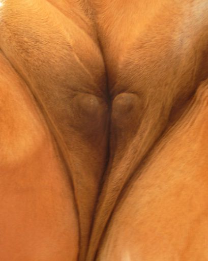 | Dire merci | non,ça ne veut rien dire (pas de poulinage prochain si c'est ça que tu veux savoir) le poids du poulain empèche une bonne circulation des liquides c'est un oedème de lopette qu'elle a,ta jument voici une photo de la mienne,15jours avant la naissance (sous la démarcation ventrale,un oedème énorme) ![]() il a disparu en env 2 jours après la naissance |