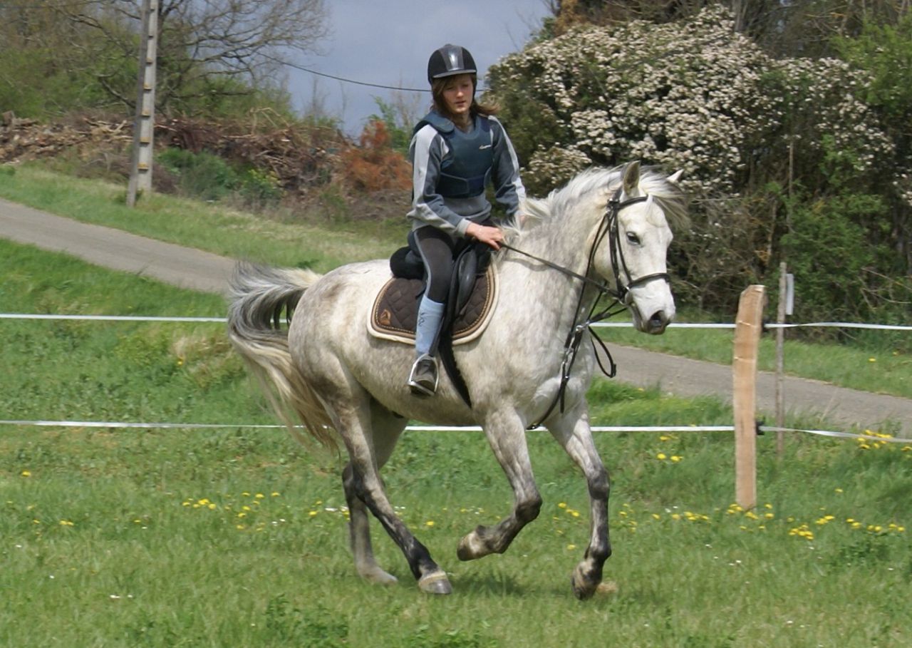 | Dire merci | Dimanche 13 novembre : Je l'essaye pour la deuxième fois. Ma tatie montait Punch et on à fait une balade pas loin du champs. Pas, trot, galop... Au galop, je ne sais pas pourquoi, elle est partie en saut de mouton, je me retrouve sur l'encolure, un coup de cul et Hopp par terre, alors que elle avait super bien galoper jusqu'a là... 2ème fois que je la monte, Déja une chute. Dimanche 20 novembre : Je la longe, à main droite --> Super. A main gauche elle se cabre à chaque fois que je lui donne un ordre. Du coup je n'ai même pas oser monter dessus. Grosse remise en question. Je regarde donc les annonces sur le bon coin, et je trouve un pur sang arabe de 15 ans, à 2 heure de route de chez moi et pas chère. J'en parle à ma tatie, et elle appelle la dame. Le samedi 26 novembre: On vas voir le pur sang arabe... J'arrive devant et je me demande ou est le pur sang arabe plein papier énoncé dans l'annonce, il était en face de moi, On dirait un demi trait, il avait plein de tiques, je l'essaye, et j'ai l'impression d'être sur une barique, il est raide. Il ne me convient vraiment pas. Dimanche 27 novembre: Je décide alors de remonter Quetsche, pour essayer de reprendre confiance. Je fais une balade de 10 minutes au pas, car il était tard et il commencer à faire nuit. J'ai abandonné l'idée d'en chercher un autre . Samedi 3 décembre : Nous avons fait une balade d'1h3O, Niquel. |