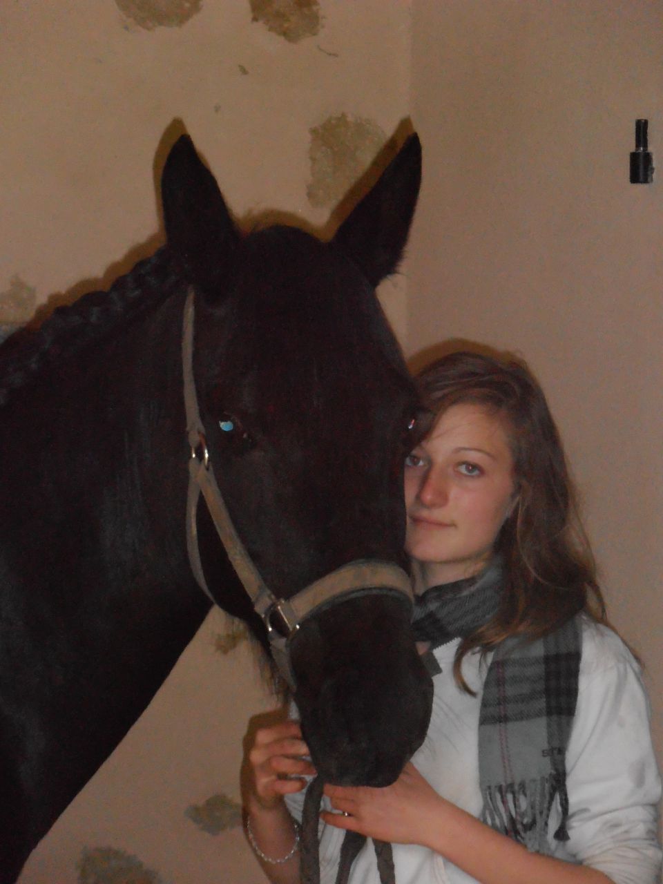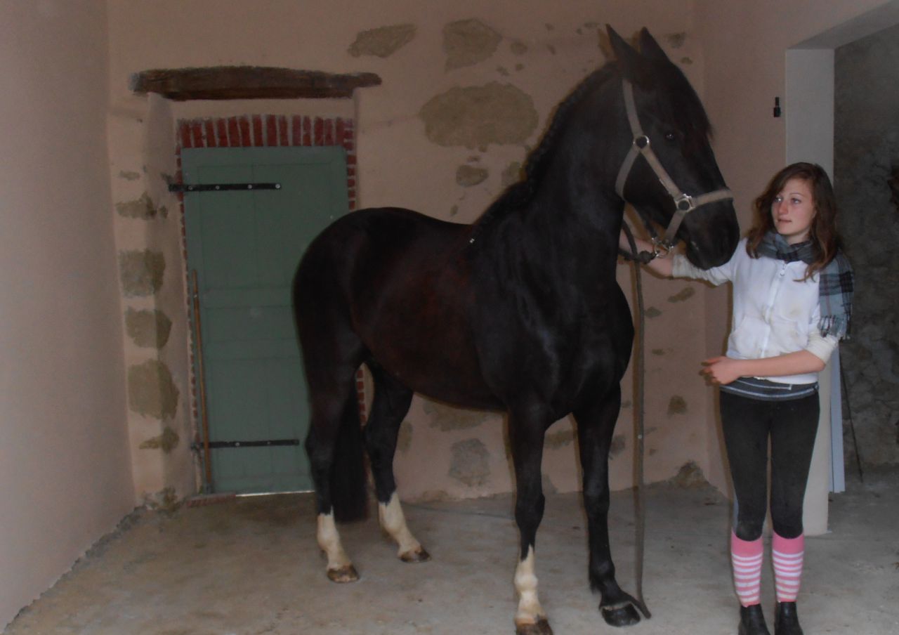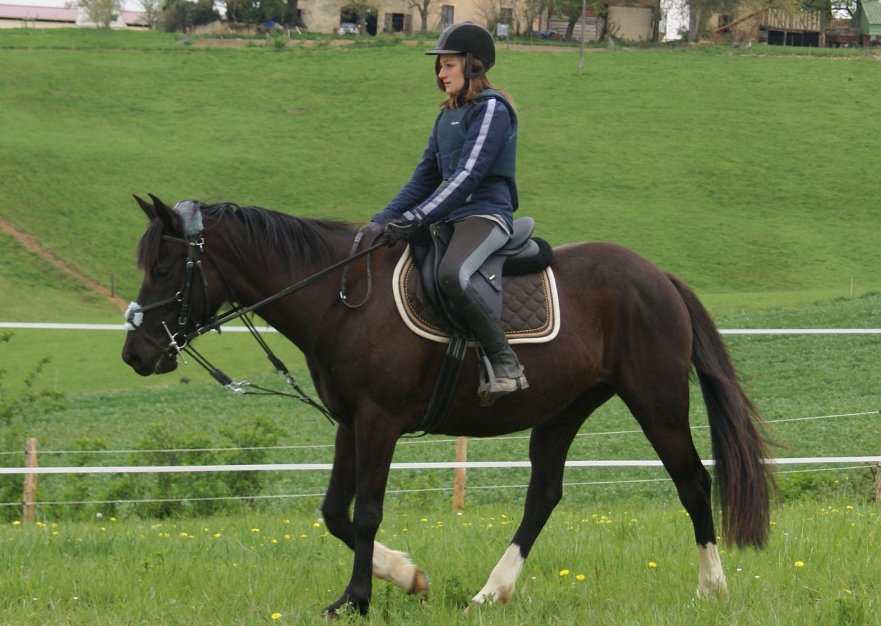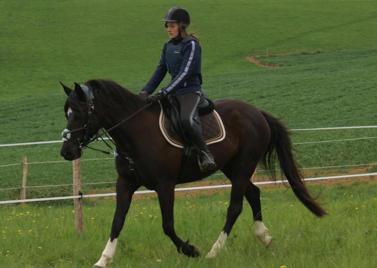 | Dire merci | Pour la petite histoire j'avais fait un post, qui est le suivant : Lien Mais malheureusement, pas au bon endroit, donc voilà sur la demande de certaines personne je le refait. ![]() Donc je reprend à zero ... : " Il y a environ 2 ans et demi, alors que j'allais voir les chevaux à l'oncle à mon père, dans le champs je vois une jument, qui à attirée mon regard. C'était une jolie jument noire, 3 balzanes et une pelote Je l'ai vue à elle plus que les autres, car elle était la seul jument de couleur unie, les autres étaient pies. Je la voulait, mais bon malheureusement mes parents ne veulent pas ... Et je dit à ma tatie que quand elle remmenera son cheval chez elle ( Il était en pension dans un club) , et qu'elle chercherai un cheval pour tenir compagnie au sien, que ca serait bien que ce soit la jument noire. Les années passent, .. Et il y a environ 2 mois et demi, ma tatie remmène son cheval chez elle. Il est donc temps de prendre un autre cheval, ce cheval c'est en partie moi qui vais le monter, donc il doit me convenir. Elle appelle son oncle pour lui demander de nous montrer les chevaux qu'il a à vendre, ( il en a une cinquantaine et ils sont la plupart à vendre ). Le mardi 1er novembre, nous allons voir les chevaux. Dans le champs il y avait une dizaine de chevaux, dont Quetsche ( La jument noire ). Et je me dirige dessuite vers elle. Et je demande comment elle est en selle, il me dit qu'elle est energique, mais très gentille. Je ne fait même pas attention aux autres. Ma tatie lui demande quand est ce que l'on pourrais l'essayer. Et me vient une idée, j'ai penser que ca pourrais être Ma jument, j'aurais donc MA jument, elle ne serait pas chez moi, mes parents n'aurait donc pas à s'en occuper quand je ne serais pas la. Ils ne pouvait donc pas dire non. Mais si ... C'est pas grave je l'essaye quand même, car il faut quand même un cheval pour tenir compagnie à Punch ( Le cheval à ma tatie ). Vendredi 11 novembre : J'essaye Quetsche lors d'une randonnée de 3 heure et demi, organisée par son proprio. " Photo : |