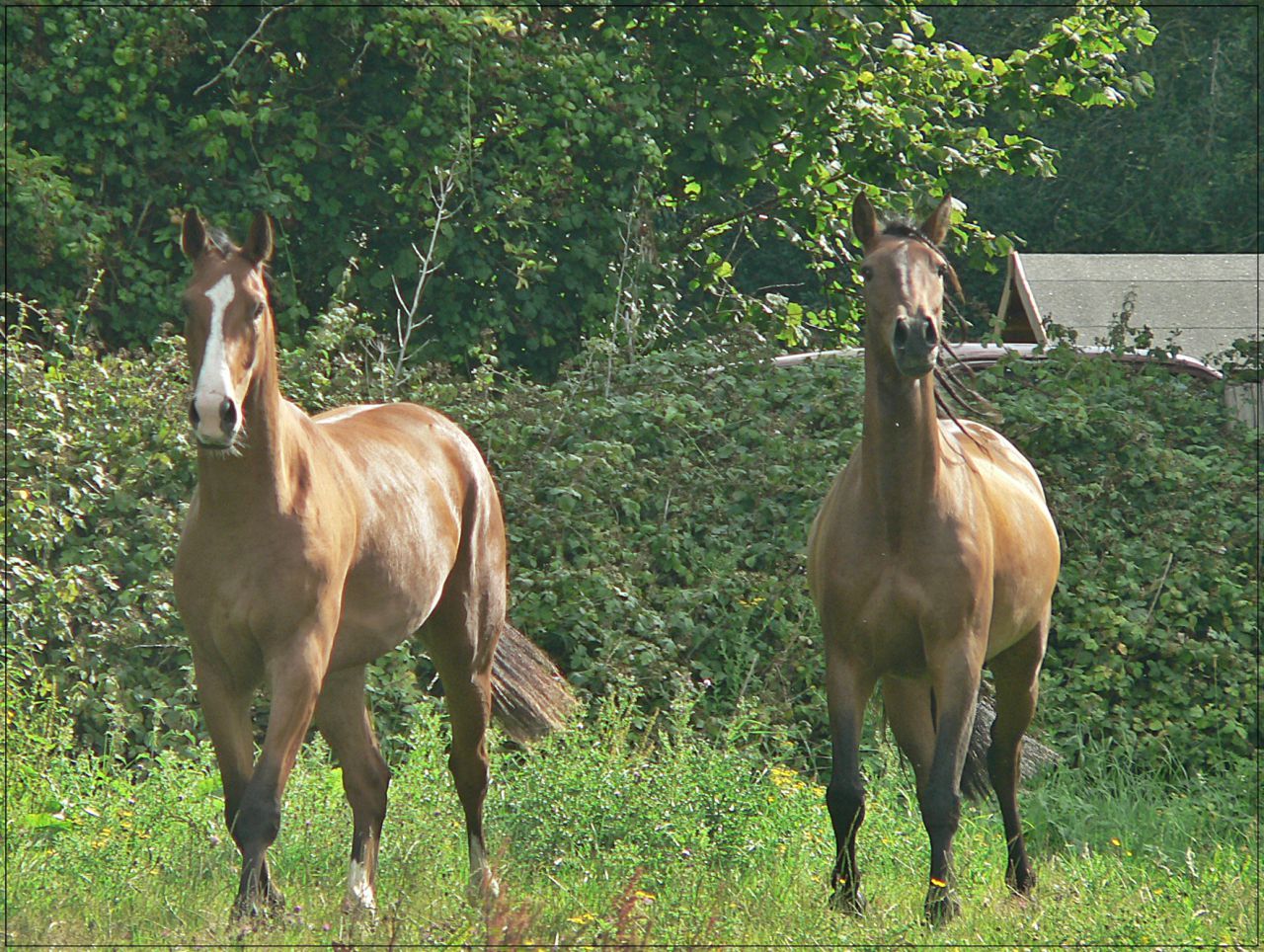 | Dire merci | Bon bon bon, après bien des péripéties, nous revoilà Quelques nouvelles: -Ulak, surnommé Polux va bien. Il aurait en fait 5 ans, et non 4. Il est chez mes parents pour le moment au box car une des poulinières avec qui il était au parc a pouliné et je ne veux pas qu'il ressaillisse juste avant sa castration. (qui devrait avoir lieu cette semaine...) Il est chaud chaud le bestiau avec de nouveaux chevaux et surtout pas très respectueux, j'ai du boulot en perspective ![]() - Rustine a toujours ses ganglions de gonflés mais elle a la forme! Nous avons repris le travail gentiement et hier, nous avons pris notre 1er cours de dressage avec une prof (outre le stage de l'année dernière avec N.Brodziak). Franchement, moi qui avait un peu peur de ne pas trouver quelqu'un qui réponde à mes attentes et à mon optique de boulot, je suis assez satisfaite! Mardi, nous allons participer à un entrainement pour faire une tite démo lors d'une fête du cheval dans mon village qui aura lieu le 20 mai. |