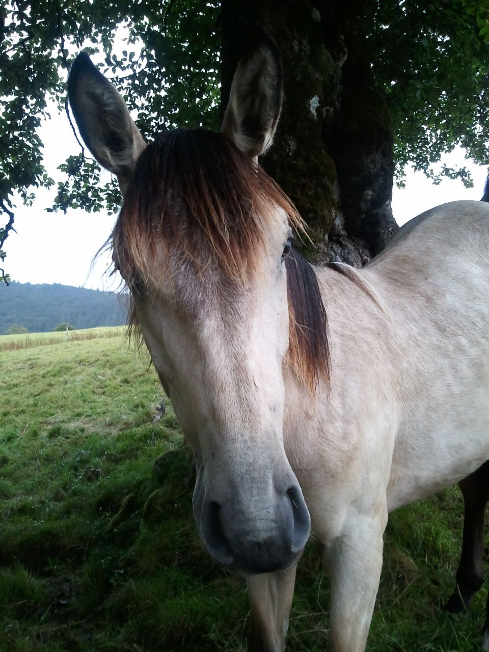| Dire merci | Bon je m'excuse pour la qualité des photos, mais vous avez pas croisé les doigts assez fort... 8degré et de la pluie .. Et madame est pas très coopérative, c'est un vrai pot de colle !!! ![]() ![]() ![]() ![]() ![]() Les copines: ![]() ![]() Bon sinon depuis qu'elle est arrivée elle a une petit boule près de la comissure des lèvres, j'ai cru à une piqûre de moustique mais c'est toujours là. ça n'as pas grossi.. ![]() ![]() Bon ben sinon, j'arrive au pré je les appel la jument à ma soeur hennit et elles viennent toutes les trois. Bliss me suis quand je lui demande quelques pas, elle très curieuse et pot de colle! |