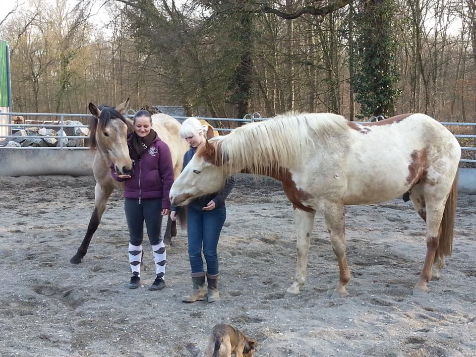 | Dire merci | Un peu de news ! Bonne séance dimanche matin. Dans le calme, pas de tics nerveux et pas de caca! Fawago68 était avec et elle a filmé (Merciiiiii). Donc on a travaillé juste la mise sur le cercle et le rappel pas les hanches. Alors c'était plutôt pas mal mais elle se tournait vers moi bien mais avait un peu plus de mal à venir jusuqe moi. Mais contente dans l'ensemble. Après j'ai enlever la longe pour faire en liberté et un cheval est arrivé (pour aller dans le rond) du coup ben euuuuu pffff c'est chi***. Mais bon pour bien finir pas le choix donc je me suis accroupi et j'ai attendu un peu. Bliss est venue vers moi et zou au box ! Hier j'étais pas en super forme donc on a mis Bliss et Fawago au rond ensemble. Comme d'hab, Bliss en mode je te pisse au nez.. D'ailleurs Faxago a vraiment eu du pipi sur la tête ![]() Photo avec Bliss et Harlem ![]() Fawago Bliss et nous ![]() Et ma belle ![]() |