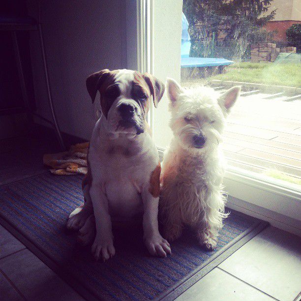 | Dire merci | Rien de trop neuf par ici! Pas mal de taf en ce moment ! Ce soir un peu de boulot sans doute! Et sinon bientôt Z'allez avoir de MAGNIFIQUES photos par ici! Raaaa j'ai hâte !!!! En attendant photo de Harlem et de Flashe la Westie aux parents à mon homme! ![]() Et là on se rend compte comme il grandit vite le petiot! Il a eu son rappel du vaccin donc on l'a mis sur la balance! C'est quil a pris 3kg en 3-4 semaine ![]() |