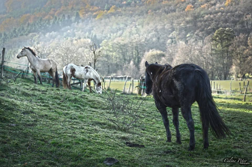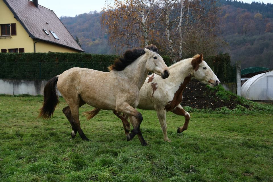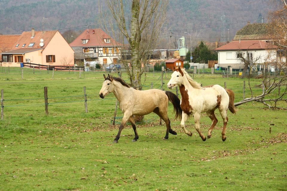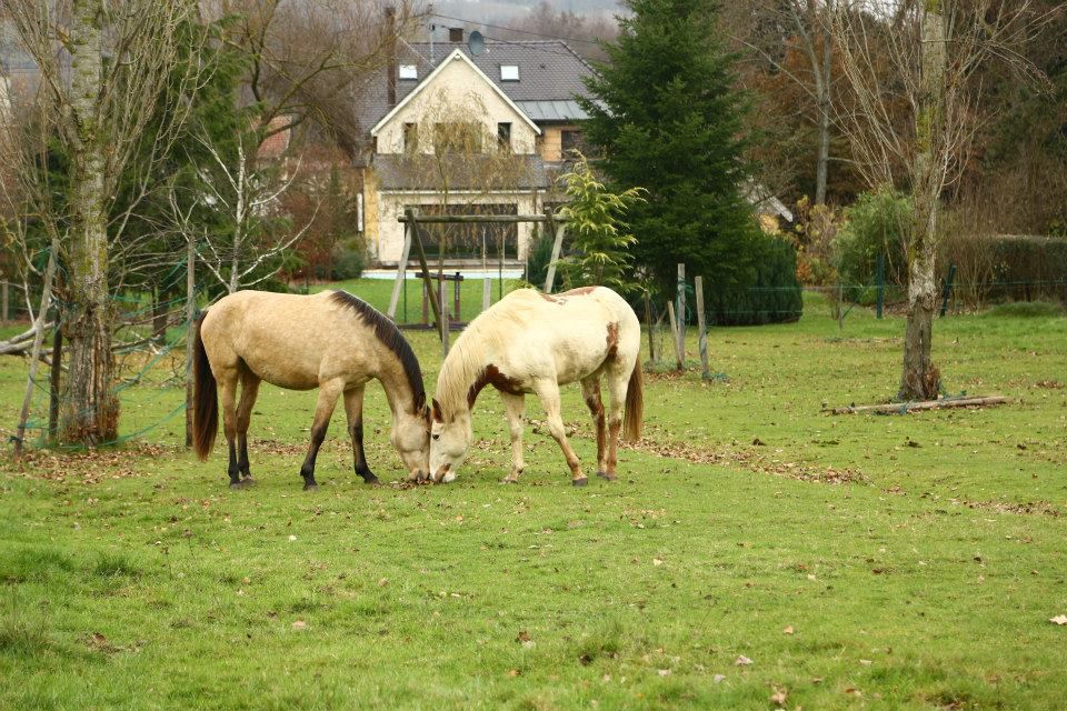 | Dire merci | Merci à vous ! Hier nous les avons donc mis avec les autres chevaux. Bon le pré est tellement grand que du coup ben il ne c'est rien passé de spécial. Il y a juste un cheval (le dominant) qui est aller voir et les maintenait un peu à l'écart. Mais rien de violent. Ça n'a même pas trop galoper. L'avantage c'est qu'il y a deux râteliers de foin. Voilà les deux surveiller par le chef ![]() Et une autre que j'aime beaucoup ![]() |