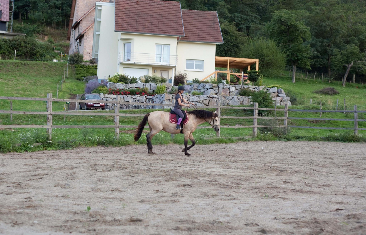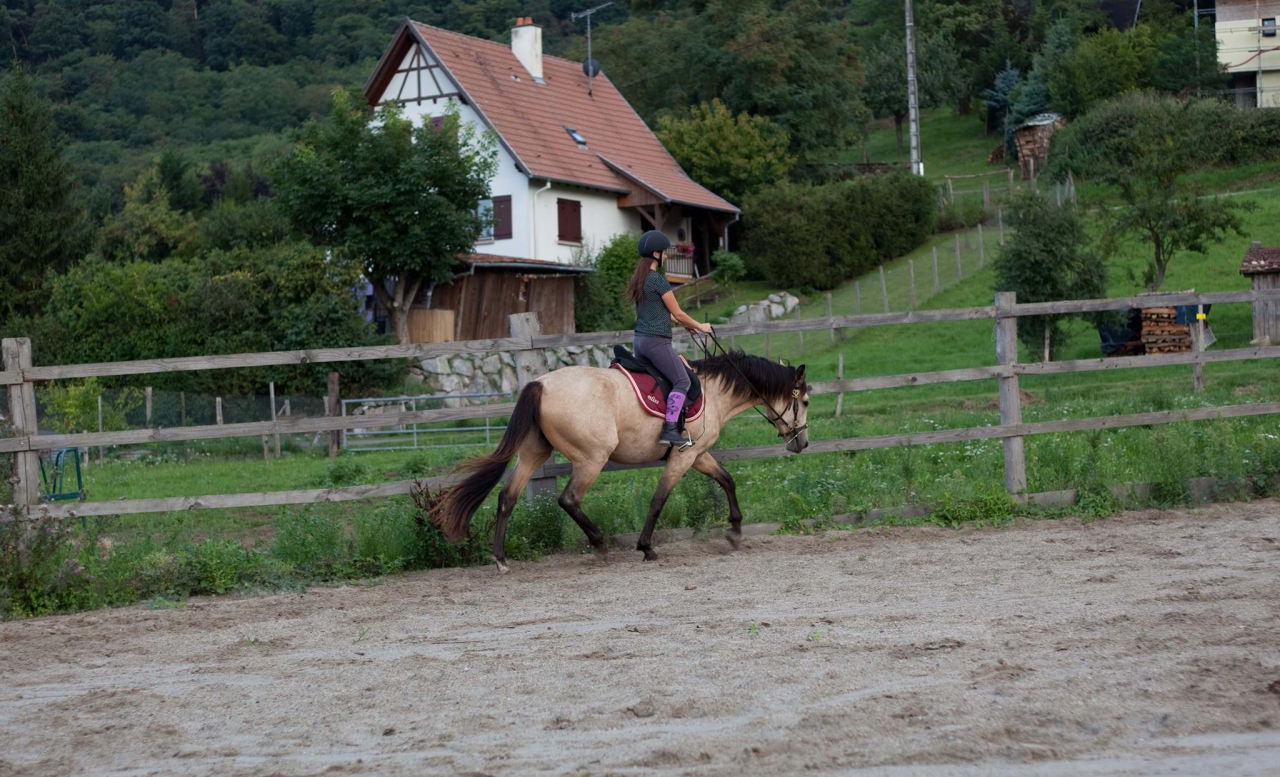 | Dire merci | Les DL par aspi au trot je le fais avec Bahia, c'est effectivement difficile de courir vite et en reculant! Qu'à son âge, tu ne veuilles pas travailler le rassembler, je comprends bien, que tu veuilles qu'elle étire son bout du nez aussi, mais l'idée de la rééquilibrer sur les épaules, je trouve ça curieux même pour un très jeune cheval...? |