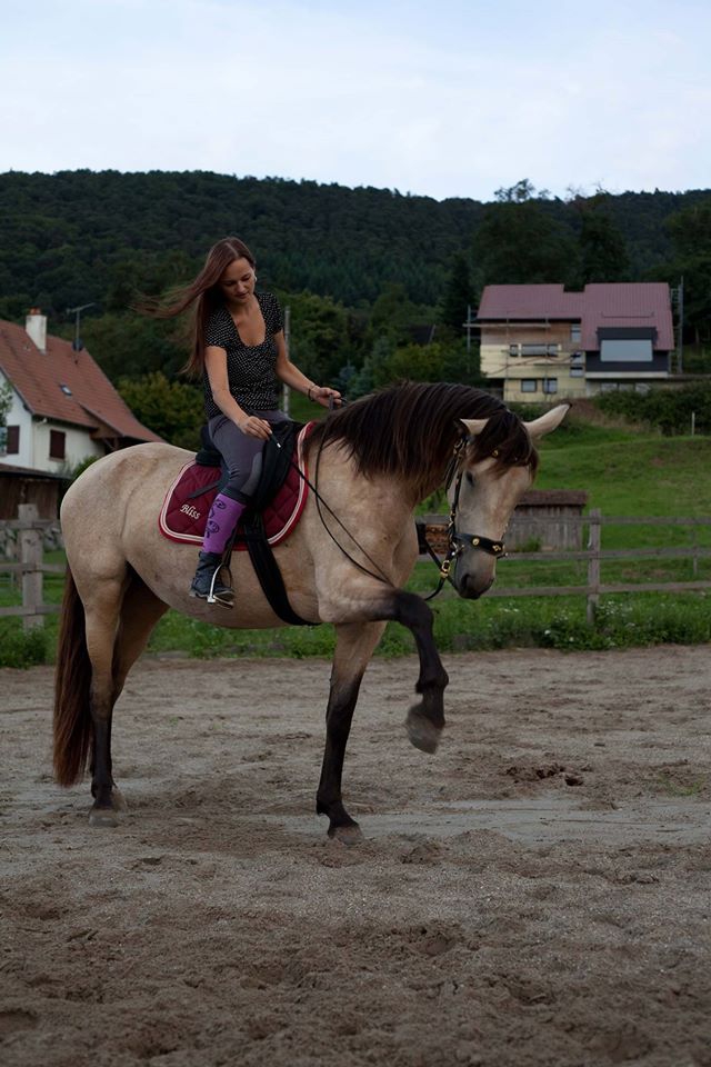 | Dire merci | anngel , merci beaucoup pour ton commentaire. Pour le pas espagnol tu as tout à fait raison. C'est exactement ce sur quoi j'ai bossé hier soir. Plus lentement. Pas après pas. Il y avait déjà un mieux. Et ça me permet de mieux contrôler les jambettes puisque en plus le droit c'est parfait le gauche un peu plus timide. La révérence je ne la demande plus. C'était vraiment juste pour l'apprentissage du couché qui est maintenant acquis. Pour me mettre dessus quand elle se lève. Je l'ai fais deux fois uniquement et je ne m'y remettrais pas avant un moment ![]() Les aspis oui elle a vraiment bien compris. Hier j'ai eu les premières DL par aspi au trot. En conclusions, il faut que je cours plus vite Pour la répartition du poids, le poids sur l'arrière mains c'est bien quand je serais plus avancé dans le travail. Là c'est du tout tout début (d'ailleurs j'ai plus du tout bossé depuis le stage). Mais pour le moment il nous faut une belle extension d'encolure où elle avance bien le bout de son nez. |
