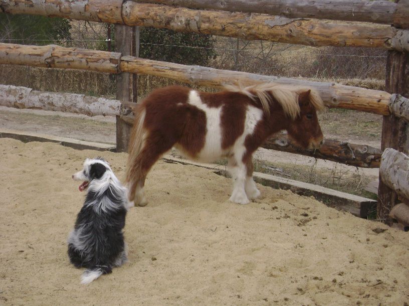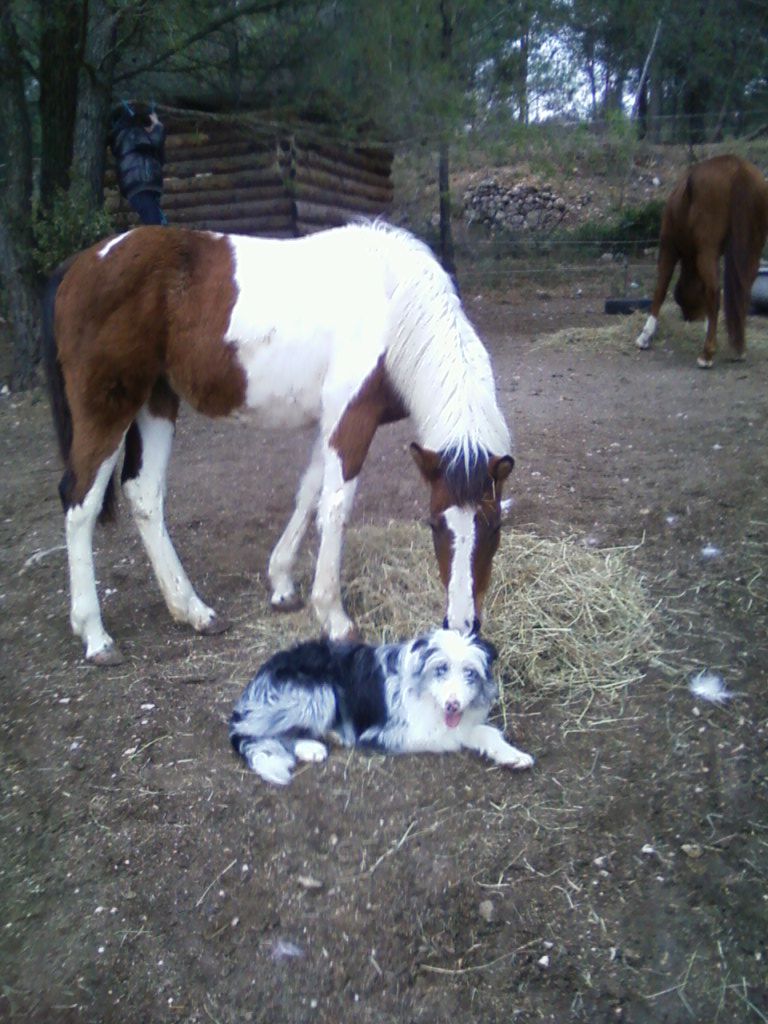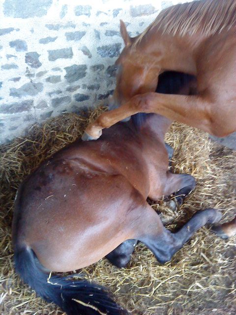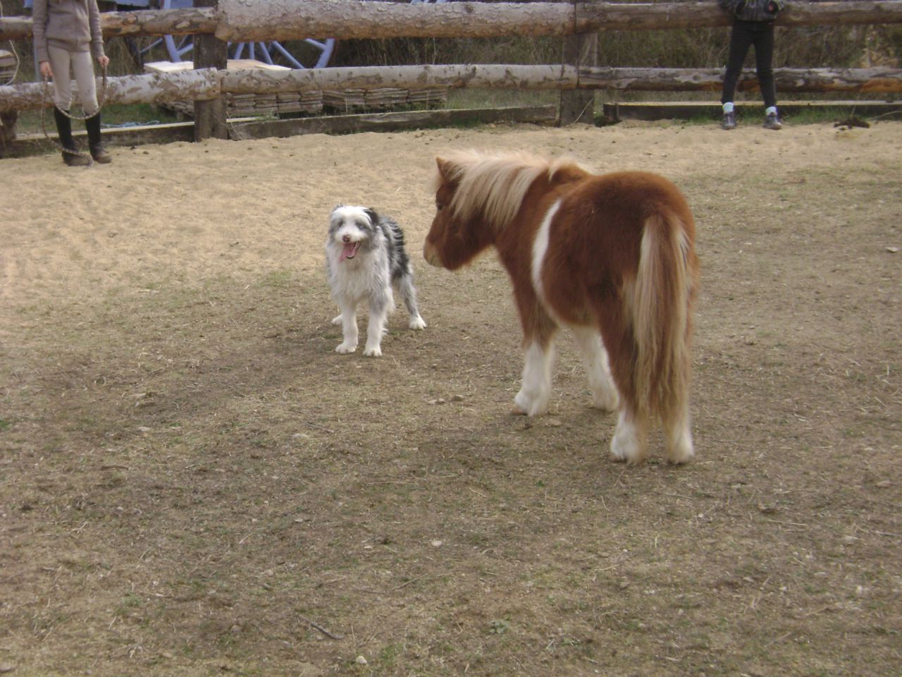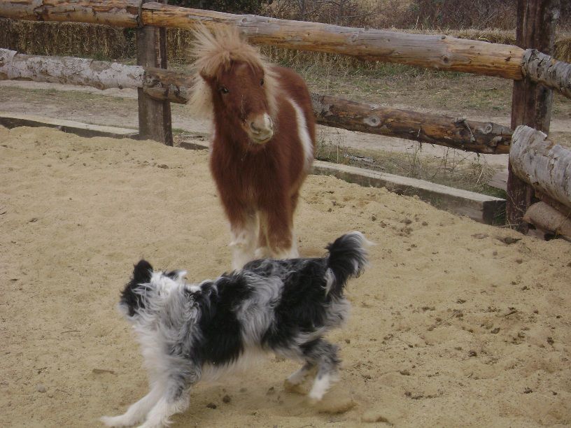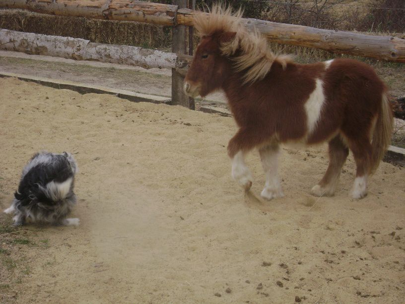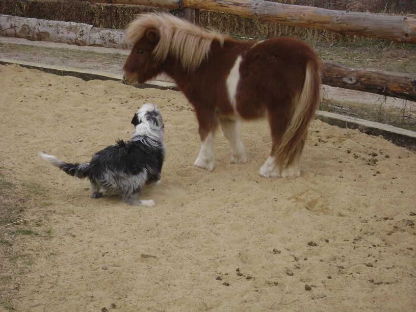 | Dire merci | on est vraiment de vilains bipêdes quand même, à recréer les jeux du cirque dans le rond de longe !!! A vouloir que le Dun en prenne une par un shet de 10 mois (afin d'éviter qu'il se fasse dévisser par l'un de nos chevaux quand il lui collera ou goûtera le jarret comme il aime faire...) et en plus ça n'a même pas marché ! Par contre il a pris le jus des clôtures avec sa queue et il a kaïkayé en me regardant avec un air de reproche comme si j'étais la vilaine responsable... A chaque fois il fait pareil et à chaque fois il croit qu'on le punit !!! Mais la fois d'après il y revient, pire, il longe la clôture avec la queue comme la perche du tramway et continue de kaïkayer en courant tout autour du paddock !!! Il est fou ce chien ! (il est jeune hein ) |