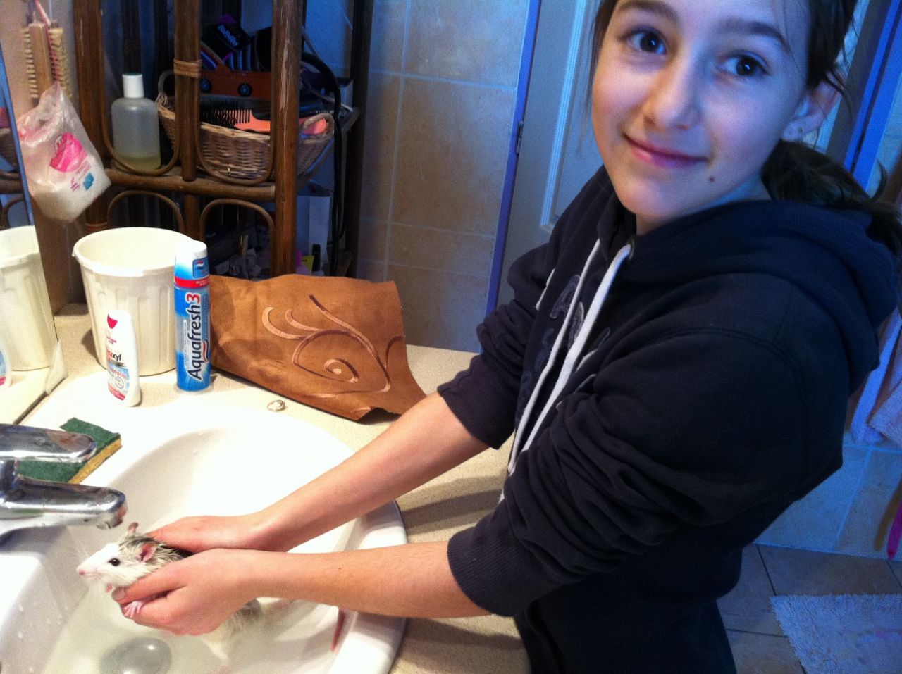 | Dire merci | faut dire que La Binette (rappel : le chat) doit roder pas loin... pas évident de faire comprendre au chat qu'il doit attraper les souris mais pas ce ratatouille là... D'ailleurs Laura lui a donné un autre nom..."Roustougnoule" !!! Va savoir pourquoi !!! J'ai failli l'oublier parce qu'il ne rentre que le week end, c'est le copain d'IUT de Julie la grande... |
