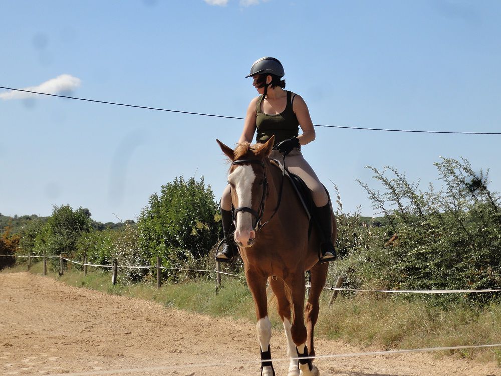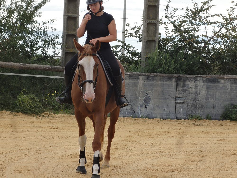 | Dire merci | Des nouvelles de la belle Qui se porte bien et me rend heureuse tout les jours un peu plus ! Je remonte un peu dans le temps pour vous parler de notre deuxième séance de saut "officiel". Une simple barre au sol, une petite croix. Une jument qui passe la barre au sol au trot alors qu'avant elle la sautait (happy !) et surtout une jument qui ne se pose pas la question quand on lui présente l'obstacle Un bon passage de dos, un plaisir manifeste pour toute les deux puisque mademoiselle en redemandais Suite de la semaine, une balade d'environ 1h dans la campagne environnante avec notre copine Parade Encore une fois très fière d'elle, pas de réaction de peur, ni de surprise, ya pas a dire elle est en confiance ! Merci Django ! Du trot, du galop, bref....une super balade ! Et on a même testé sa patience. Django avait 2 3 truc a régler avec sa juju, et Ilona n'a pas bronché quand elle est partie au trot plus loin, plus vite etc. Ma belle a simplement patienté et brouté en attendant Je suis contente parce qu'elle aurait pu stresser de ne pas être a coté de la copine mais il n'en était rien ! Maintenant quelques photos de notre dernière séance lundi |