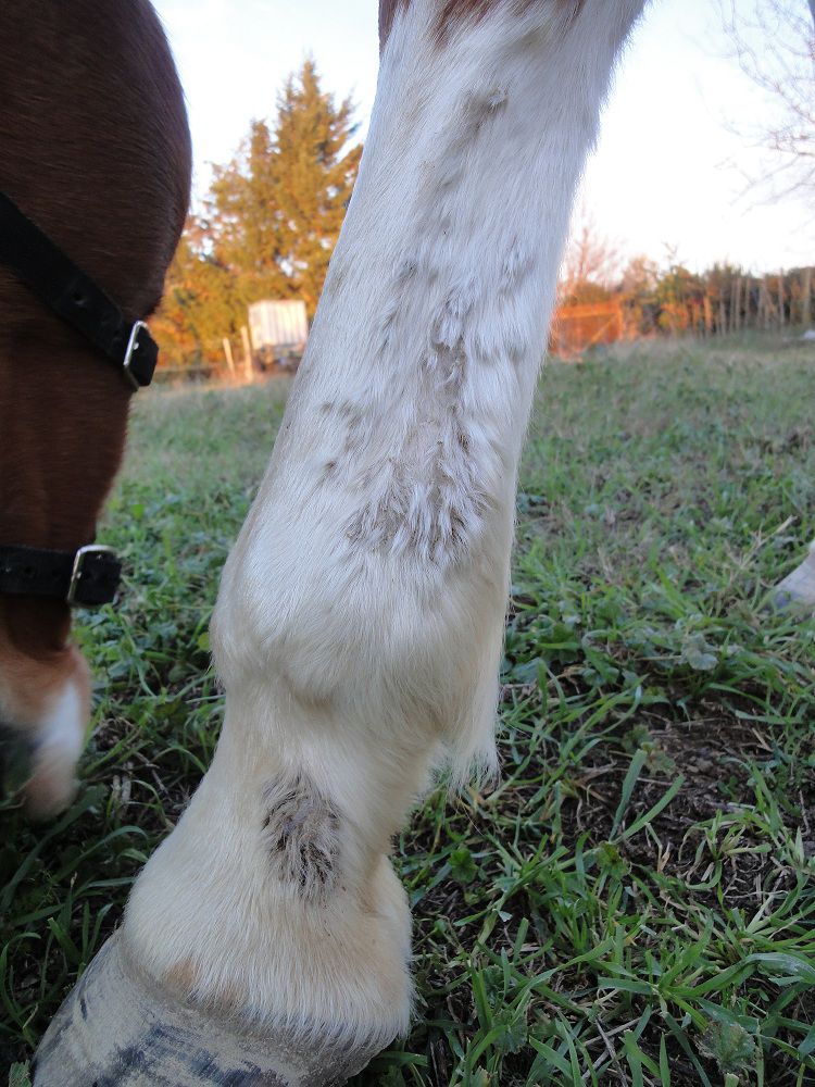 | Dire merci | Des nouvelles ! Des nouvelles !! Bon ok ^^ Alors, pour ses jambes, nenette a finit ses antibio (avemix) et ça a plutôt bien marché C'est pas encore clean mais on s'approche de la fin je le sent ! Quelques photos même !! Les poils on poussé sous les croûtes qui du coup se détache et la peau est belle en dessous ! ( yes yes yes !!!) Alors : [url=https://www.1cheval.com/membre/services/photos/images/146971.jpg] ![]() [/url] [url=https://www.1cheval.com/membre/services/photos/images/146972.jpg] ![]() [/url] |