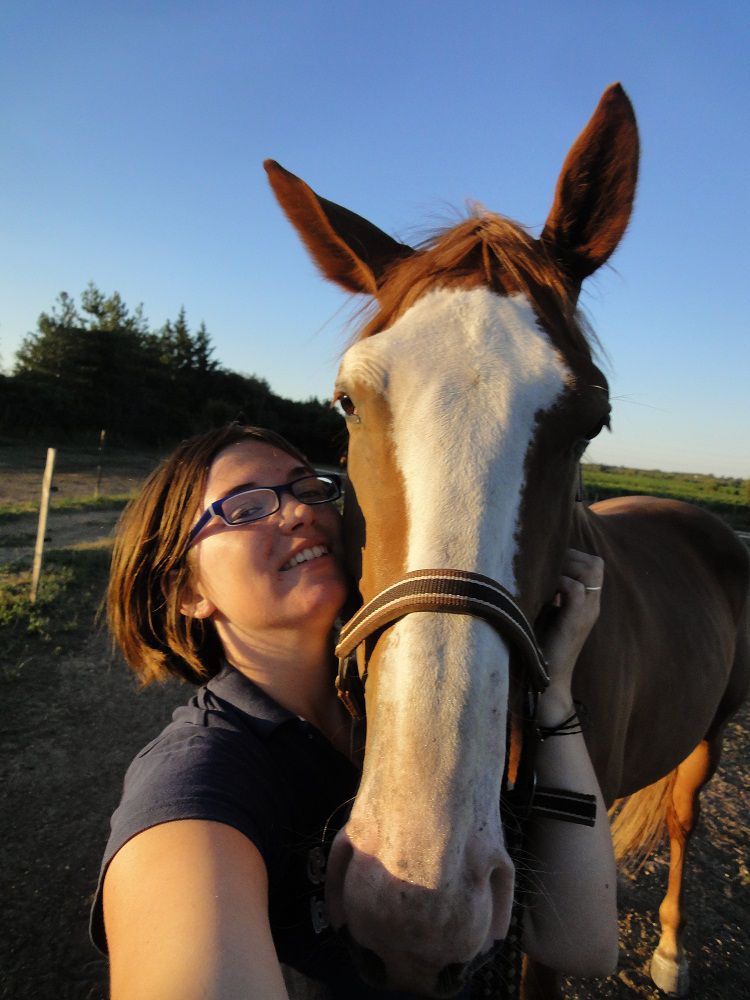 | Dire merci | Bonjour ! Voila les nouvelles : En première page hier...Ilona est une délinquante ! Elle fait la folle dans la nuit en courant a fond de train autour de son abris en "poussant" les autres a la bêtise... Bah oui il fallait bien que se soit quelqu'un qui mène la danse et forcément Donc on fait courir le pote aussi, on fait aboyer les chiens et sortir la gérante a 22h c'est bien c'est bien Pas comme ça toute les nuit Ilona ! Brrrr Vosse Merrie ! Du coup, je me suis dit qu'il était peut être temps de me remettre dessus ! Ah bah oui ! Donc vers 20h ' (quand on a retrouver une température des environ de midi en Belgique ) On s'est mis au boulot. Longe avec la selle au trois allures dans le rond, avec une jument qui écoute qui a du feu a sortir mais qui reste entièrement disponible( vos merrie ) Ensuite, en selle pour une découverte de notre nouveau terrain de jeu ^^ une belle carrière avec tout plein de choses bizarre autour et du haut de ma girafe une magnifique vue sur le pic saint loup ! Donc hier du pas et du trot sous la selle. Pareil, une pur plaisir ! On effleure les flancs et sa part en avant dans un bon trot, j'essai de cadencé avec mon assiette mais pas évident. Mademoiselle est assez distraite au trot mais bien réceptive pour les transitions. On passe a l'allure inférieur "sur les fesses" et on s'arrête avec rien dans les mains...c'est a se demander si a la limite elle ne lirais pas dan sles pensées Bref vous aurez compris qu'hier j'ai eu deux "figure" très bien et que j'ai pris mon pied ! Je peu pas dire autrement Parce que même si ça fait un moment que je ne me suis pas mise dessus on sent qu'il y a eu un gros (et surtout bon) travail derrière. Hier je me suis vraiment senti bien avec Ilona. Merci Tessa, on peut être fier de la base ^^ a moi de ne pas faire de bêtises mais aie aie aie elle est vraiment tip top sous la selle.... Je gagatise ? Non je suis juste amoureuse de cette jument |