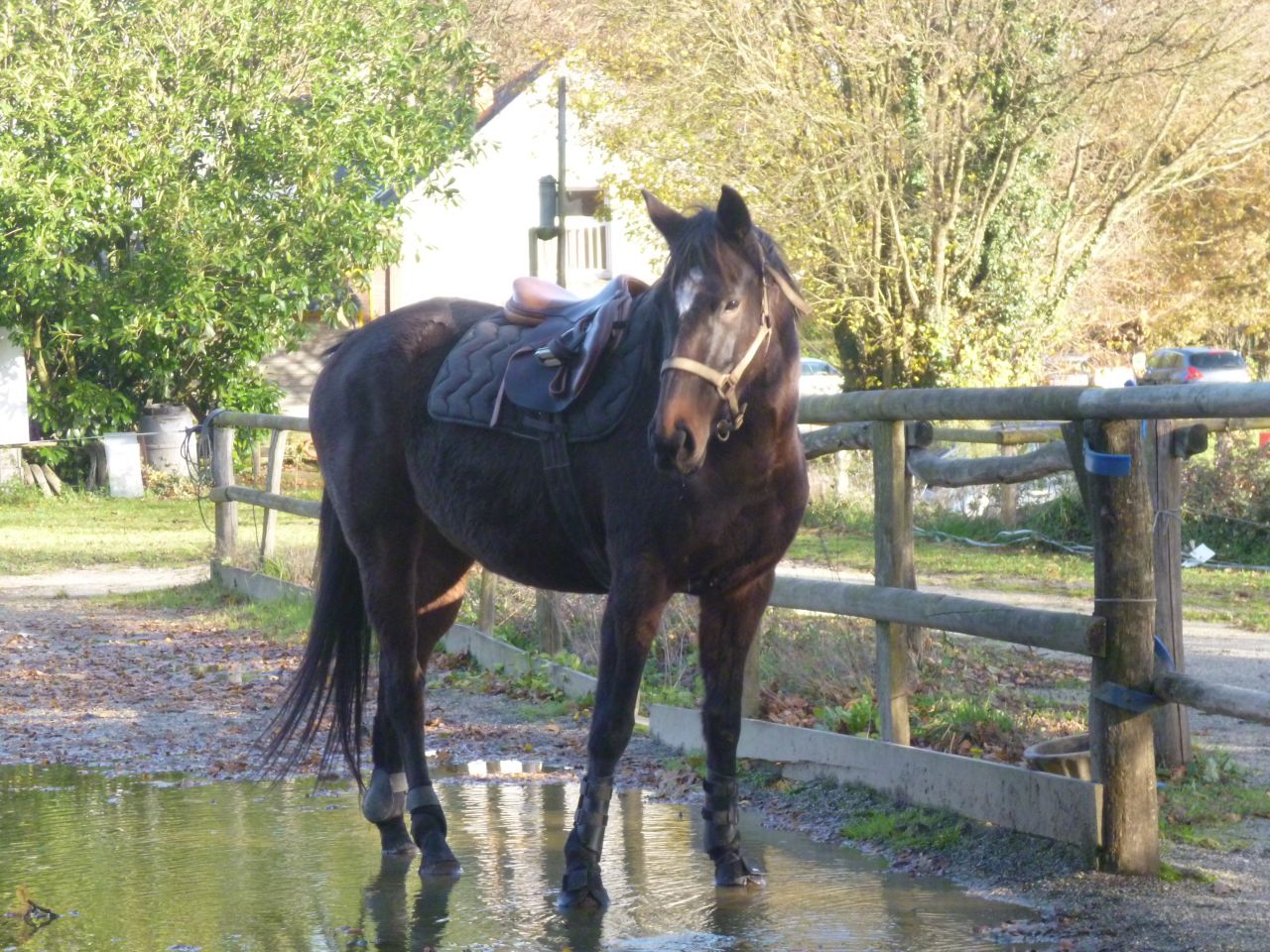 | Dire merci | Ma PS va bien, elle est presque devenue comme les autres, sympa, gentille, cool. On commence à sortir en exterieur (mais tout est inondé ici donc on tourne en rond pour le moment). J'aimerais la sortir en complet, idéalement, à la reprise de la saison de concours. Pour l'instant on en est à 50 000 bornes mais on bosse ... ![]() |