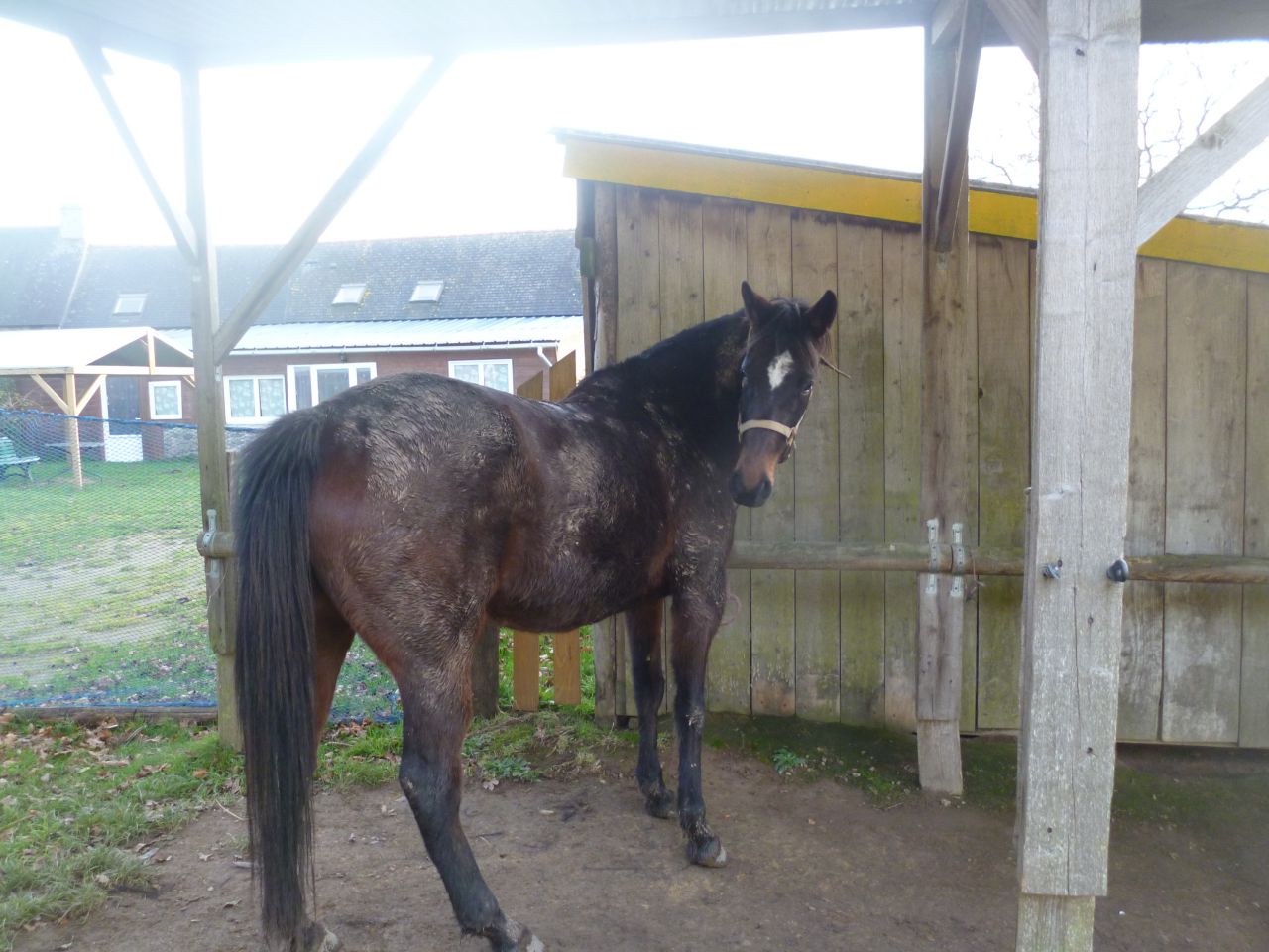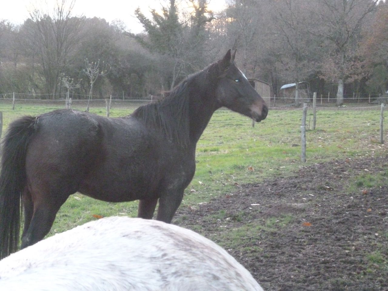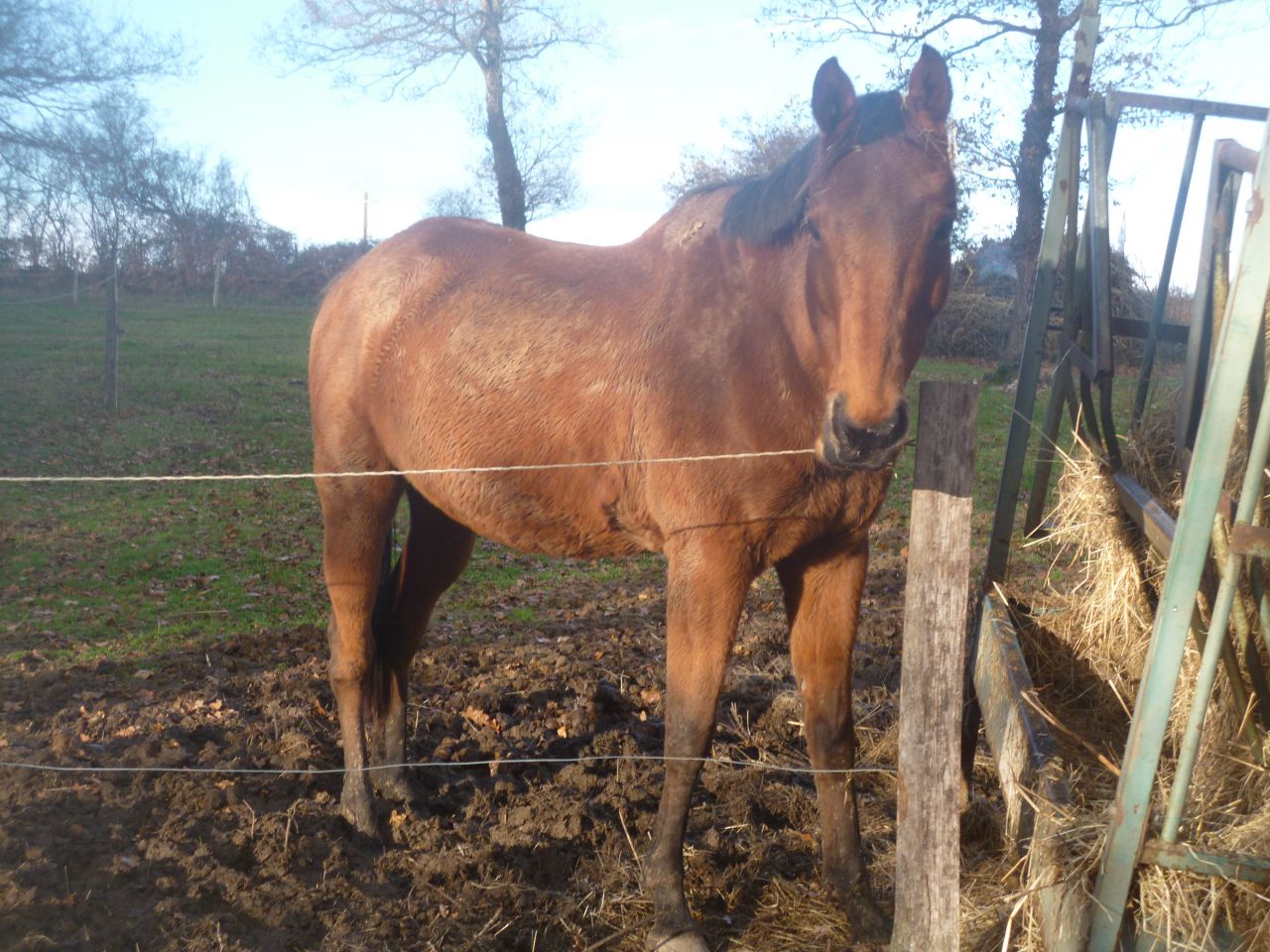 | Dire merci | Mon PP, je n'oserais vous mettre une photo ... Il a prit 10 ans d'un coup là. Et quand je me dis qu'il n'a seulement que 19 ans, j'ai honte ... Il semble avoir le moral, il est s'entend hyper bien avec sa copine ps mais il se deplace mal, il a le physique d'un cheval de 30 ans, et en plus je pense que j'ai un problême à cause de la boue. Je le sors tous les jours pour le panser et l'emmener promener en main, il attend ça, il se fixe à la cloture quand j'arrive, puis ben jvais essayer de le remettre un peu dans ses godasses quoi |