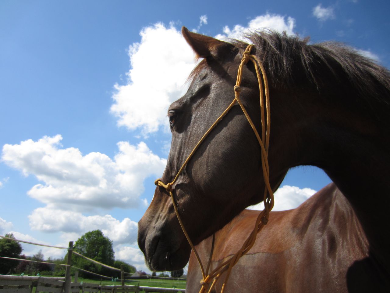 | Dire merci | parce que ce matin il a été super génial au travail à pied ! détente au lasso, poursuite par quelques exos a pied en main et puis ça ... (attention moment très court très intense...) je suis super contente des progrès qu'il fait avec le plastique, les bâches, les rubalises & cie |