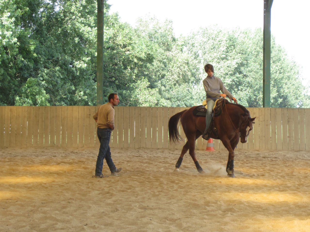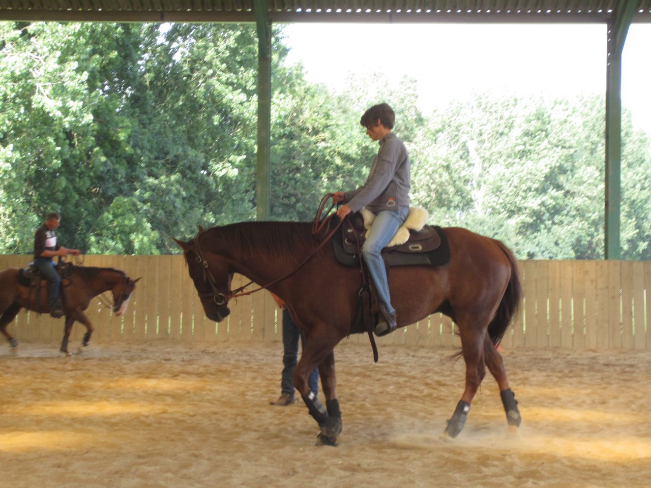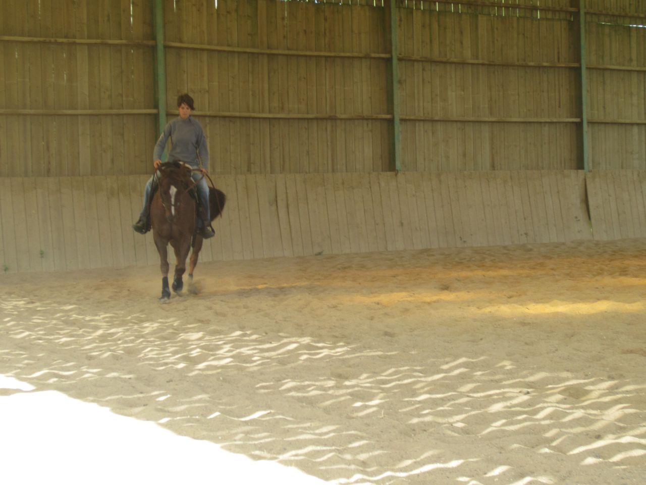 | Dire merci | aller quelques photos du stage ... comme promis mais avec du retard. ![]() donc le stage a consisté pour ma part à corriger encore les défauts de mes mains et jambes, pour le Pucky à travailler "sa bouche" et le but pour les deux un cheval calme, en place et surtout corriger ses mouvements de défense a chaque changement d'allure (montantes et descendantes) au départ c'était entièrement ma faute, ensuite c'était qu'il avait peur que je refasse mes erreurs et ensuite du foutage de gueule sinon Pucky ne porterait pas bien son nom ! LOL les photos sont celles de la derniere session, on était rincés et on avait déjà bien progressé (il ne jetait la tête en l'air uniquement a la transition trop-galop) ![]() ![]() ![]() |