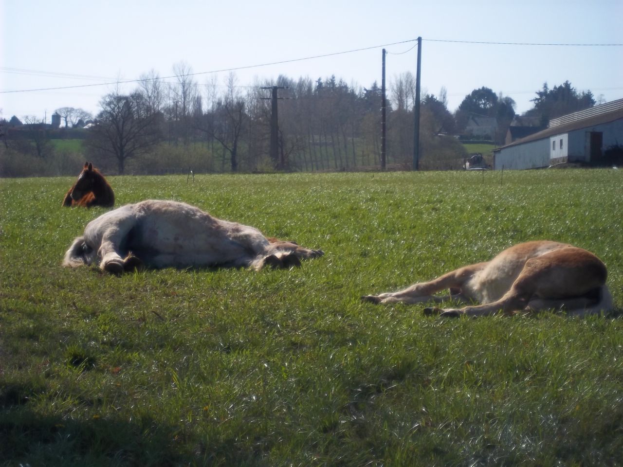 | Dire merci | Trop dure la vie de poulain au soleil !!!! Je viens du champ ou j'ai fait un point d'attache à un chene. Mon petiot était étalé de tout son long en pleine sieste ....et .... il ronfle !!!!! MDR ! Une vraie mobylette |