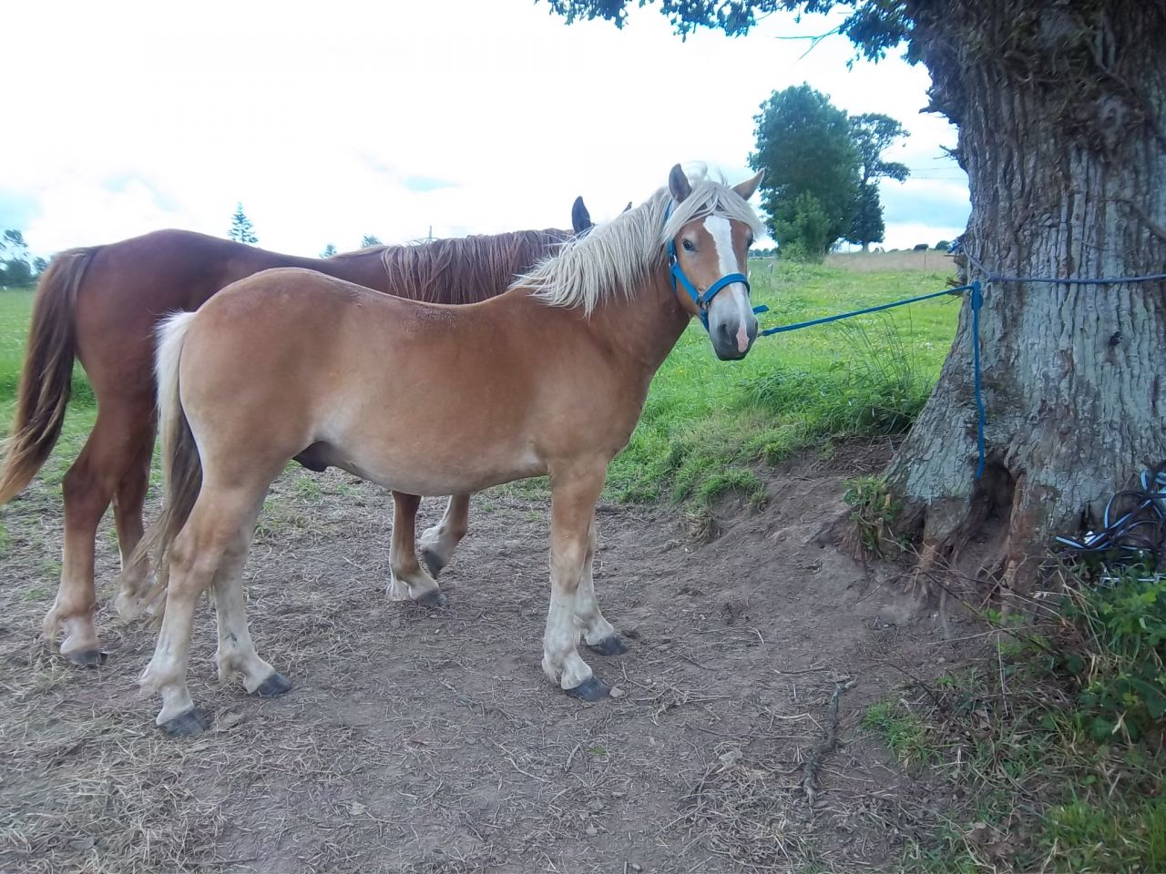 | Dire merci | 16 mois aujourd'hui et 3 mois qu'on l'a. Un vrai gentil ; curieux , malin, et plutot calme. Les haflingers sont pour moi les labradors des équidés !!!! |