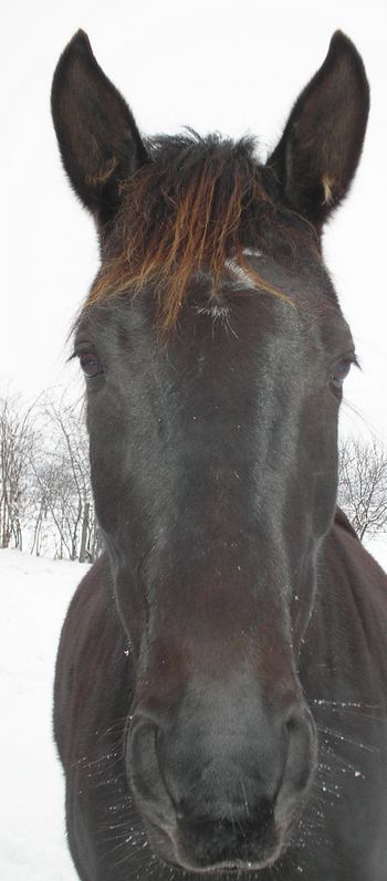 | Dire merci | J'ai appris beaucoup grâce à elle, et j'ai fait des choses que je n'aurai jamais imaginé possible. Deux anecdotes me viennent en tête. Une balade sous le ciel étoilé et par une lune éclatante, à cru, juste un licol... C'était... magique, même plus que ça mais il n'y a pas de mots. C'est vraiment une expérience que je recommande à chacun parce que c'est complètement différents. Les sons, les odeurs, les points de vues sont différents, tout est différent. La jument aussi était plus alerte, plus concentrée sur ce qu'elle faisait, prête j'aurai cru à me protéger de quelconque monstre nocturne qui serait venu à notre rencontre ! La deuxième anecdote c'est une balade dans la neige, mémorable ! J'aime beaucoup la neige, les paysages immaculés, les chemins immaculés que l'on a l'impression d'être les premiers à découvrir. Mais dans ma région, même si la neige est légion, il n'y en a jamais vraiment assez pour qu'un balade ressemble à l'exploration d'une terre inconnue... Et pourtant, cette année là, il a vraiment beaucoup neigé, et eu beaucoup de vent. Avec ma soeur, nous décidons de partir en balade pour profiter de cette quantité neigeuse ! Et alors là, ça été la surprise ! Il devait y avoir un mètre de neige sur les chemins du plateau ! Les chevaux avaient un peu de mal à avancer et s'enfonçaient beaucoup mais alors vous imaginez l'atmosphère aventureuse qui régnait !! Nous avions notre chienne avec nous Dixie en sa qualité de meilleure chienne du monde, la plus marrante et la plus souriante que vous pouviez rencontrer !et donc notre Dixie disparaissait sous la neige le plus souvent !!! Enfin voilà, des moments comme ceux là il y en a eu beaucoup, mais ceux là sont intéressants à raconter et surtout pas trop long !!!! |