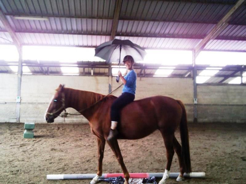 | Dire merci | 2 eme et dernière journée de passé. L'épreuve monté a était physique pour moi, un Coquin bien au dessus de la barre et moi qui subit les saut. IL est rester mignon malgré une grosse peur a cause de chiens qui sont sortie a fond de derrière une haie le long de la carrière. Je mettrait les notes plus tard dans le week end. Il est arrivé 4 eme et a 0,40 pt du premier. Voila pour le national. On rentre demain j'espère que le trajet se passera bien. |