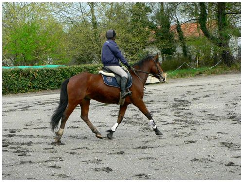 | Dire merci | Encore des nouvelles de Quasar, je suis allée le monter hier, petite séance de dressage qui était bien mal partie... Le premier quart d'heure a été très compliqué, Quasar et moi avons eu du mal à nous accorder, toujours dans le conflit, et on n'arrivait pas à se poser ni l'un ni l'autre. Ma monitrice est montée dessus pour me montrer comment faire mais c'est vrai que pour un 8 ans, Quasar manque de dressage, et de mon côté, pour une Galop 4, je manque cruellement de technique. Comme je travaillais sans étriers pour améliorer ma descente de jambe, j'ai fait de belles crèpes, merci poney de m'avoir supportée pendant ce temps là... Après une chute (complètement de ma faute), on a finalement réussi à s'entendre et à dérouler (presque) sans encombre notre reprise de dressage pour dimanche ! Yeah poney ! ![]() Message édité le 18/05/12 à 16:21 Message édité le 18/05/12 à 16:22 |