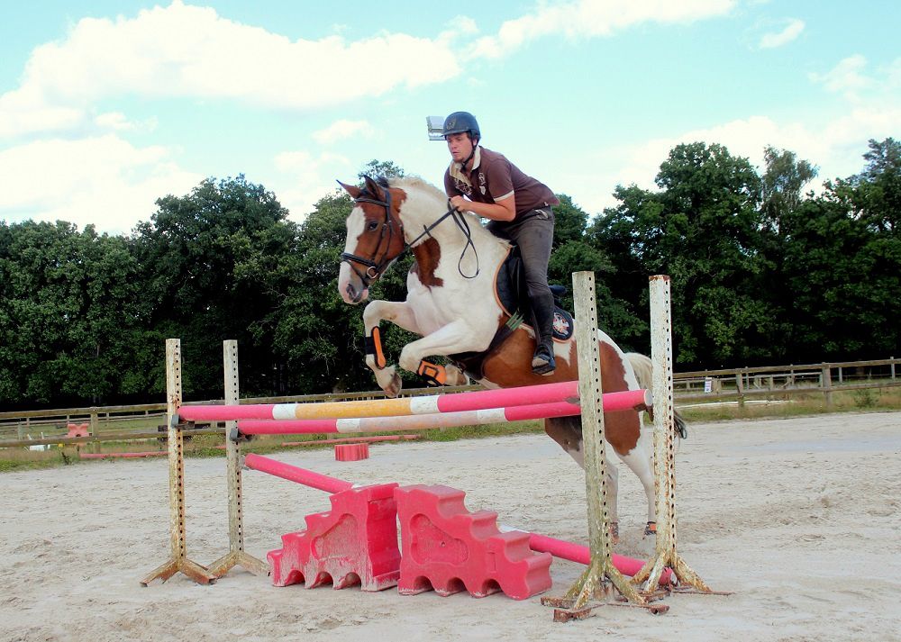 | Dire merci | Bonjour, bonjour ! Je viens régulièrement sur 1cheval, mais au final je n'ai jamais présenté mes bêtes ! (enfaite je vais rarement ailleurs que sur le forum principal... )Avec mon homme on a commencé un petit élevage amateur de chevaux et poneys de couleur à vocation sportive (et plus particulièrement en CCE). On va aussi commencer l'élevage de Rocky Mountain Horse ! Nous avons un facebook aussi "Elevage des Etoiles", où nous mettons pleins de photos ! Alors commençons par les gars : Qui va de Thouaré, PFS palomino, 8 ans, 1m47, mon poney de concours et notre étalon proposé à la saillie. Je fais de tout avec lui, il est adorable, et on s'entend très très bien. Je sors principalement en CCE depuis septembre, et nous progressons bien ! On tente les championnats de France en juillet si tout va bien. ![]() Qui va a aussi crée sa page FB, il veut conquérir le monde, tout ça... Boumeur, ONC, 1 ans, pie bai, 65cm ![]() Je vous mets les juments dans un prochain post sinon tout ne va pas tenir Message édité le 07/01/13 à 09:56 Message édité le 07/01/13 à 09:57 Message édité le 07/01/13 à 09:58 Ce message a été modifié par un modérateur.Message édité le 31/01/13 à 15:33 Message édité le 17/03/13 à 20:52 |
