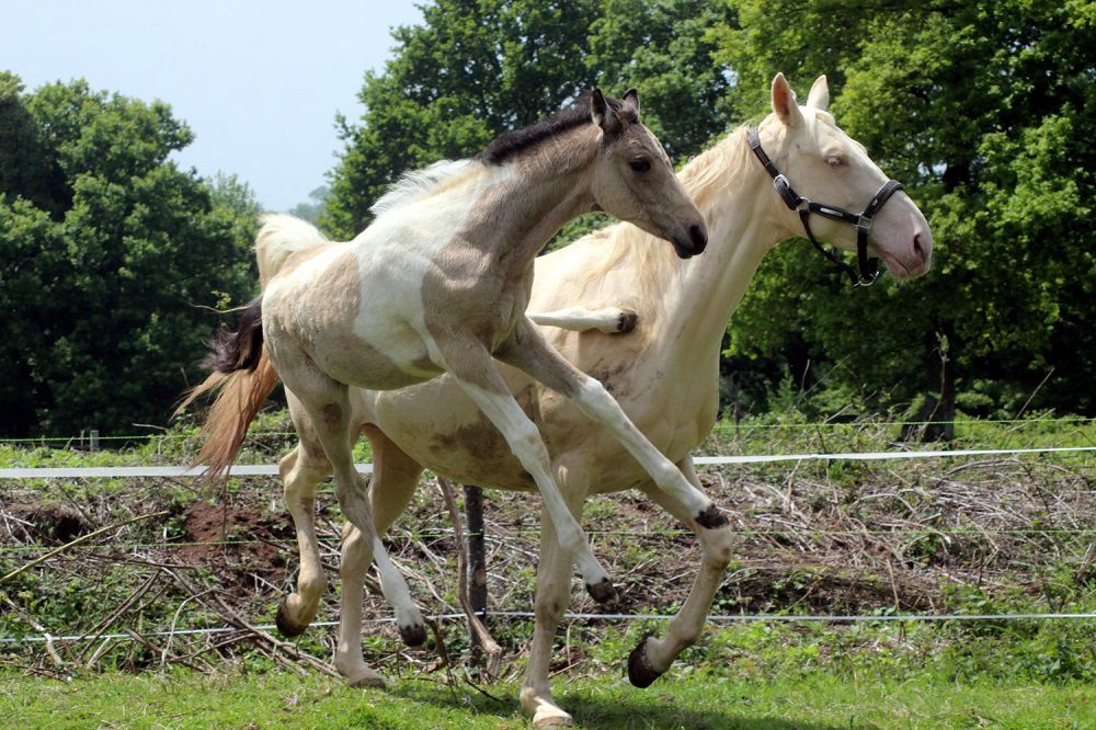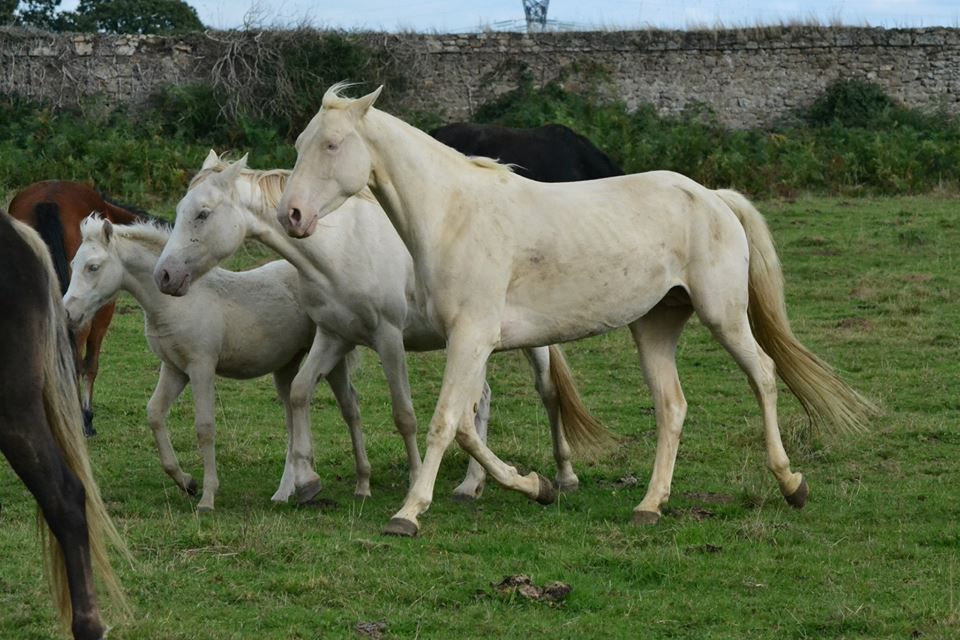 | Dire merci | Pour fêter ces bonnes nouvelles, j'ai mis donc les annonces de mes chevaux à vendre, c'est à dire : -Dzerelle -Doutuvien -Briska -Naiade Et de mes ventes de saillies : -Rick -Qui va (l'annonce est en cours, faut que je retrouve un blabla) Sinon pour reprendre ce que j'avais écris avant la "crise", l'an prochain on attend 5 naissances des croisements suivant : Winter (ZFDP cremello) x Newton de Kreisker (SF bai) = SF palomino ou isabelle Wendy (KWPN noir DW) x Qrocodile d'Enfer (SL bai SW) = Z bai, noir ou alezan, avec ou sans splash et/ou dominant white Malika (PFS isabelle) x Qui Va de Thouare (PFS palomino) = Welsh K, perlino, cremello, isabelle, palomino, bai ou alezan (avec ou sans le sabino de Kiki) Ivitchig (PFS grise) x Qui va = Welsh K, bai, isabelle, alezan ou palomino, avec 50% de chance que le poulain grisonne Silvia (NMRPS silver varnish) x Red Boogey (?? alezan léopart) = OC mini crotte, silver, léopard, uni, en gros la méga surprise... Aucune idée si les poulains seront à vendre ou pas, certainement pas pour celui de Wendy, et les autres on verra en temps voulu. Il peut déjà se passer tellement de chose avant la naissance, et on craque toujours un moment ou un autre... Sinon en 2014, on prévoit de mettre à la repro : Wendy avec un étalon pie, j'aime beaucoup Troubadour, mais j'ai peur que ça fasse un poulain très compliqué, même si les poulains de Wendy sont là pour mon seul et unique bonheur, car je ne souhaite pas les vendre...Ou alors Ballan Soso, un beau pie, avec de superbes noms dans les origines : Baloubet du Rouet, Darco... L'avantage c'est qu'il sort en CCE, et ça j'aime bien. Enfin bref j'attends de connaitre les tarifs des étalons, ça m'aidera à me décider ![]() Lolita avec soit Qui va soit je ne sais pas... ça dépendra un peu des finances, mais j'aimerai bien lui mettre un champagne DSA sur elle (elle est PFS mais 50% arabe), oui bien un cheval qui amène de la taille (elle toise 1m57). Bref on verra. Une jument qu'on nous confie : une Flipper d'Elle x Qredo de Paulstra. Donc ps des origines qui donnent de la facilité d'utilisation. On veut de la couleur, donc un homozygote, donc soit Ringo, soit son propre frère Ceasar ter Linden, soit un étalon anglais : Semper Spirit Ivitchig x Qui va Silvia x Chmylblic Indienne (SF palomino) x Consul DL vie Z (Z bai, Clinton x Heartbreaker) Et normalement une nouvelle recrue qui ira à Rick l'été 2014... Voilà et pour clôturer ce beau blabla, des photos, car c'est quand même le but de ce sujet ![]() Je vous laisse deviner qui est qui, y'en a ce n'est pas difficile ! (arg blabla trop gros, je mets les photos dans un autre post) |
