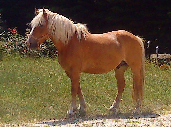 | Dire merci | Oui Ned , d'un tempérament plus calme est plus rond que Morgan toujours à l'affut de ce qui se passe ... plus nerveux , il est plus sec ... l'hiver c'est mon baromètre car il est le premier à perdre s'il n'y a pas assez à manger ... je l'ai vu grelotter un hiver ... A partir de ce jour j'ai décidé que lors du gros de l'hiver il aurait une couverture ... quel ne fut pas ma galère pour qu'il l'accepte les premiers jours .. mais il a bien compris que c'était pour son bien et qu'il avait plus chaud .. maintenant (ca fait 6 ans que je l'ai) : il me voit arriver avec il arrive à moi lol ! Ned (en juin 2009) : ![]() Morgan (même époque) : ![]() Et vous allez voir que Kingo est plus fort que Jerez aussi ... Ces deux là étant plus grands que les 2 autres ... |