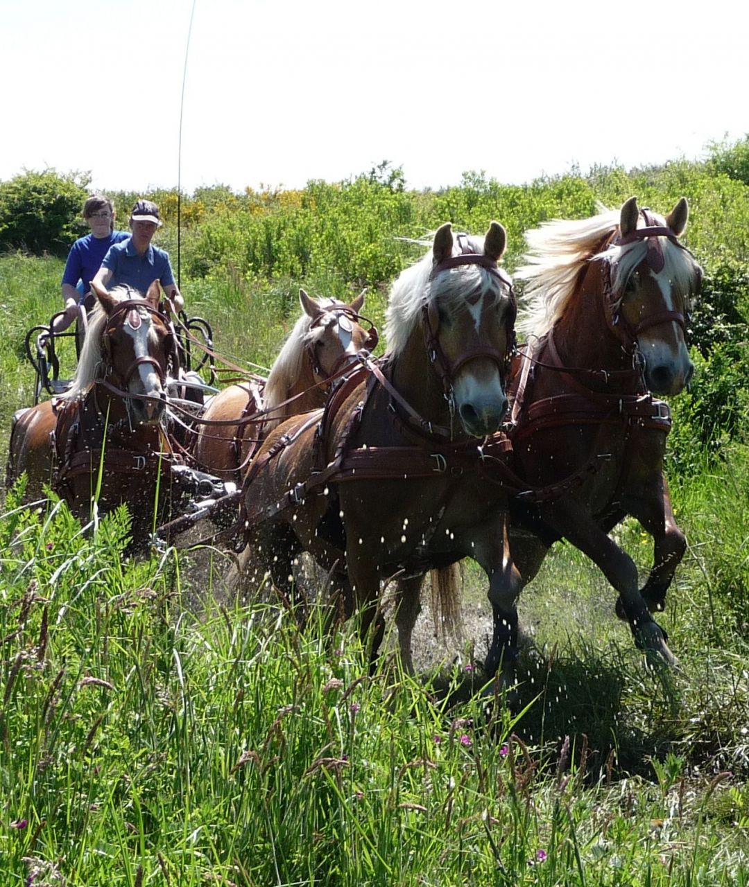 | Dire merci | Donc me voilà avec deux paires ... opérationnelles : Ned Et Morgan = la sécurité pour moi Jerez et Kingo = la puissance pour certaines opérations ... Et puis la venue d'un client avec ses 5 chevaux m'a donné l'envie de gouter à l'attelage à 4 ... Certes il avait 5 trotteurs très gentils .. ca prométtait une autre paire de manche avec mes blonds ... J'ai craqué sur une belle marathon pour me donner la sécurité dans cette aventure ... et hop ... quand la réalité dépasse le rêve : ![]() |