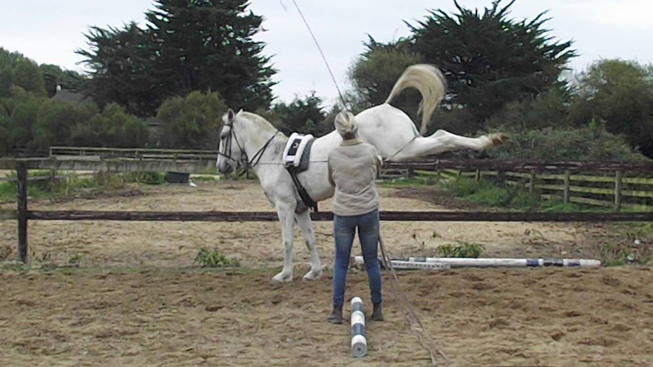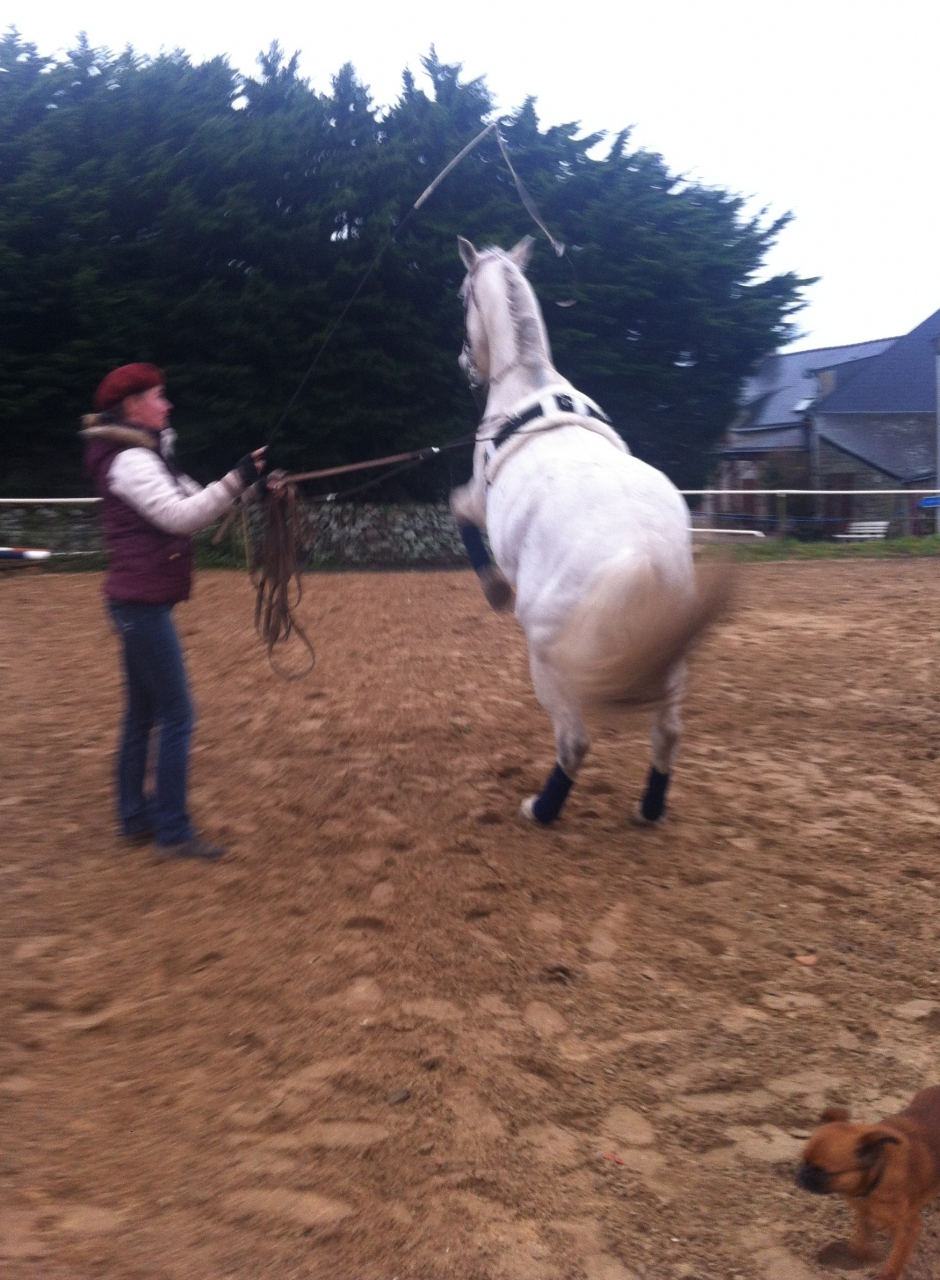 | Dire merci | Sinon mes efforts se concentrent acteullement sur Sadio afain de lui apporter la rigueur qu'il n'a pas dans les codes pour les différents exo à excécuter ... Ainsi il on fait beaucoup de gymnastique au longues-rênes que j'affectionnent particulièrement : Contre épaule en dedans ![]() Il apprend la levade : Que je sois derrière lui ou à ses cotés ... ![]() ![]() |