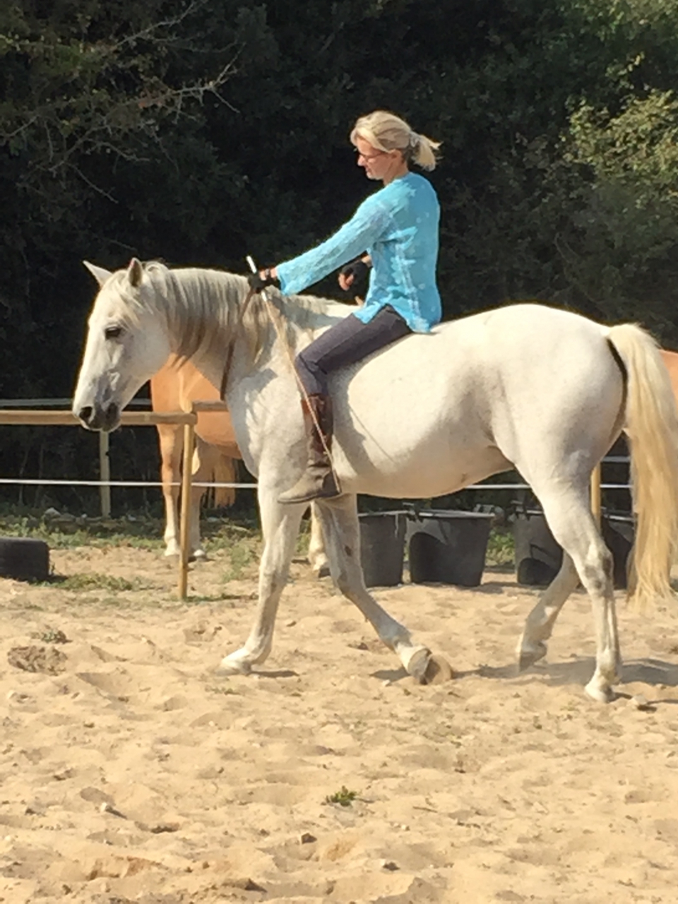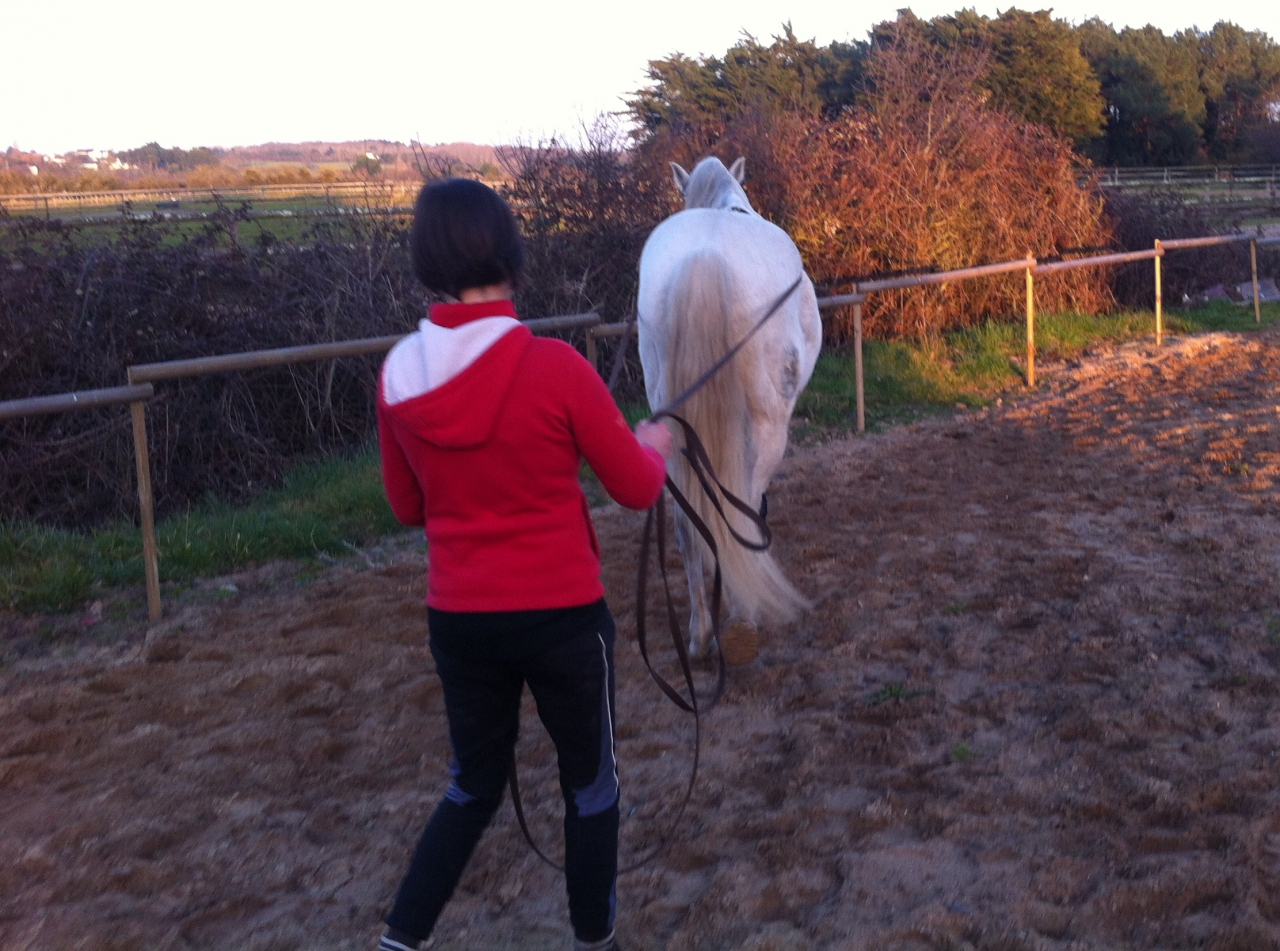 | Dire merci | Des projets nouveaux naissent en effet ... Depuis quelques années la fédé nous "oblige" à orienter nos séances vers le travail à pied ... outre les longues rênes ou la longe ... Les spectacles équestres fleurissent et sont un succès ! Cela fait réver et beaucoup de jeunes proprios travaillent leur chevaux à des airs de fantaisies comme j'aime les appeler ! Donc : Congor sera aussi un lieux d'entrainements vers l'Art équestre ! Sadio sera son ambassadeur ... ... Ainsi je prévois d'organiser un petit spectacle amateur debut novembre ... on en entend parler et on me confie un cheval au travail ... Petit lusitanine trop compliqué pour son proprio je dois le remettre au travail et je ne résiste pas à le travailler aux longues rênes ... je découvre qu'il a pleins de boutons de Haute Ecole : Levade, pas diagonalisé, et ... croupade même ! je me régale dans les doigts ! il se remuscle et est valorisé : il se refait une santé tant et si bien que le proprio me le reprend tres vite ... trop vite ... mais c'est ainsi ! ![]() |