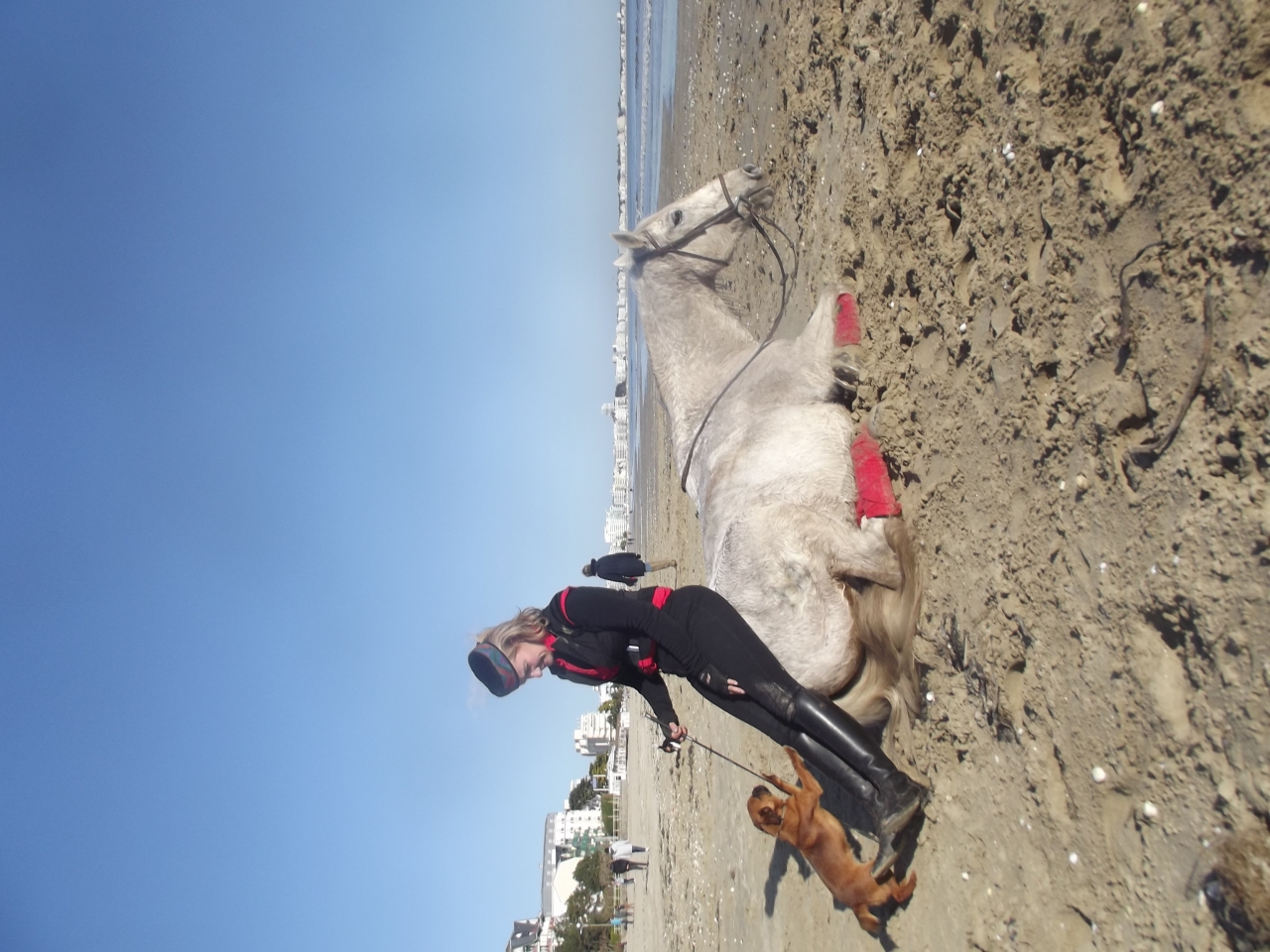 | Dire merci | L'idée est de "remplacer" ma tendre jument que j'ai perdu il y a deja quelques années et de retrouver un cheval -partenaire ... Je souhaite aussi pouvoir ré-avoir la capaciter de propsoer des cours d'équitation pour cavaliers confirmés désirant approfondir le dressage ... Sadio sera bien plus ! Mais je ne le sais pas encore ... Déjà se profile la possibilité de faire ma promotion par ses tours d'airs de fantaisies qu'il connait déjà en liberté as espagnol, révérence, cabré, assis![]() |