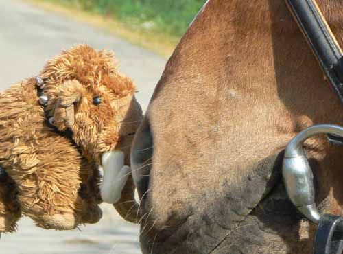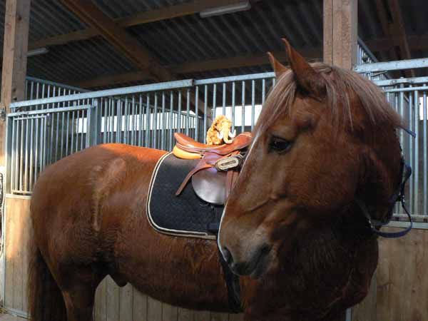 | Dire merci | C'est Doudou, un des vieux chevaux qui étaient là avant les cob. Il est pas si vieux en fait, il a 22 ans, mais ça fait 15 ans qu'il est à la retraite! |