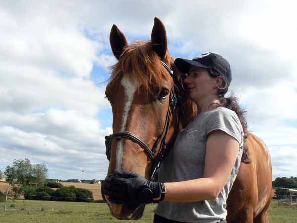 | Dire merci | Avec les ennuis de santé de Bellinda, je n'ai pas eu beaucoup de temps à consacrer à mon Poupounet magique, à part pour des petites visites gratouilles express... Et puis, pas trop le moral non plus. ![]() Mais hier, j'ai trouvé le temps de le monter un peu sur le plat. On a juste fait une mini-séance au pas, mais il m'a fait plaisir! J'étais juste trop contente d'être sur son dos et il a pigé un truc: j'ai réussi à lui faire tourner les hanches autour d'un plot, chose sur laquelle je butais (pousser les hanches en selle, à pied aucun problème, donc pas de souci physique... c'est le plot qui a été le déclic pour lui, ça l'a aidé à visialiser et à prendre des repères je pense). Bref je l'ai laissé là dessus du coup, mais j'étais juste trop contente de lui. Et actuellement, c'était bienvenu je dois dire! ![]() |