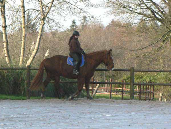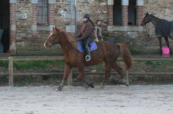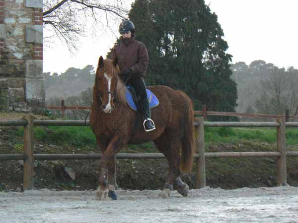 | Dire merci | et ben sacrée séance ! l'a de l'énergie ton grand cheval ! effectivement raccourci peut-être tes étrier, même d'un trou si ça peut te permettre de mieux les garder et donc de mieux encaisser les sales coups ^^ ça va venir y'a pas de raison, quand il aura compris que de toute façon c'est toi qui a le dernier mot, il finira par comprendre que plus vite il se met au boulot plus vite tu lui fou la paix ^^ |