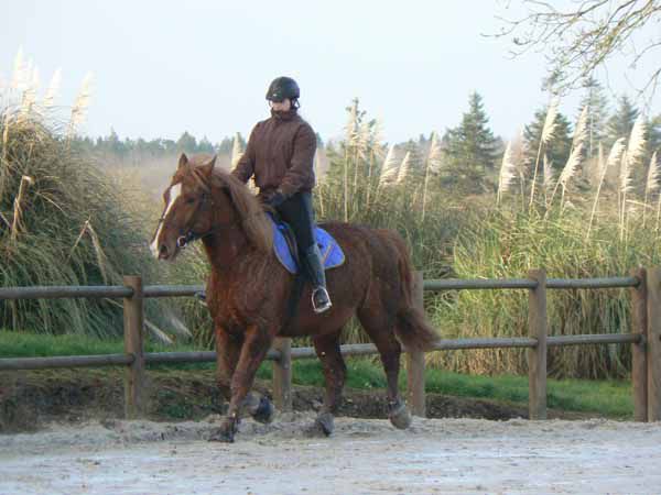 | Dire merci | Ce qu'il a fait? Son sale c** de poney! Donc hier, on est allés voir Poupounet en grande délégation. Ma copine rhine (pour ceux qui s'en souviennent quand elle venait sur le forum), son mari et son fils, Steph, la cavalière d'Iris, et mon copain. Poupounet a tenu à assurer le spectacle! Plus sérieusement, il y avait du vent, il y avait de l'agitation, les autres chevaux étaient en train de rentrer au box/êtres soignés, bref, tout pour qu'il ne soit pas d'humeur à bosser. J'ai tout de suite senti qu'il allait être pénible... ![]() Pourtant il avait l'air mignon là: ![]() Mais bon voilà, faudra bien qu'un jour je puisse en tirer ce que je veux quelles que soient les conditions, donc j'insiste. Là, on voit qu'il est plus occupé avec ce qui se passe à côté qu'avec ce que je lui demande. Dans ce cas je m'efforce de lui demander des trucs pour le "récupérer". En général, à base de cercles et d'incurvation. Et en général, quand il est en mode tête de lard, sa marque de protestation, c'est de refuser de tourner. C'est ce qui s'est passé, sauf que cette fois, j'ai pas pu le reprendre et qu'il est parti pleine balle dans l'autre sens. ![]() ![]() Je me suis ramassée 10 m plus loin. Bref, je suis remontée, on a recommencé. Il m'a refait un départ et j'ai pu le reprendre cette fois, puis on a recommencé à essayer de bosser. Et le sale branleur, il avait la patate! ![]() Mais toujours entrecoupé de "mode tête de lard" ![]() Je l'ai de nouveau asticoté sur un cercle et il m'a refait la même. J'ai presque réussi à le reprendre, et franchement, arrivé vers le petit côté, je pensais que c'était bon. ![]() Sauf que vous noterez que j'avais perdu mes étriers. Et en sortant du petit côté, vu que j'étais toujours dessus, ça l'a gonflé et il a commencé le rodéo. Ca, il ne me l'avait encore jamais fait, mais clairement, depuis le début, j'avais plus ou moins en tête qu'un jour ça arriverait. J'espèrais me planter, et ben râté! ![]() Il est monté en puissance jusqu'à ce que je tombe. Sans étriers faut reconnaitre qu'il n'a pas eu besoin non plus de devenir fou furieux pour y arriver hein! Mais bon, même sans monter haut, il est puissant ce con!Bref je suis remontée, et on a repris le boulot au pas en essayant de bosser sur la soumission... Comment dire... ![]() Il continuait de chercher des prétextes pour "avoir peur" ... ![]() ![]() Pourtant quand il veut, il bosse bien le cochon! Reste à ce qu'il fasse même quand il veut pas. ![]() Sur les conseils de rhine, on a fini au trot sur des transitions, toujours pour essayer de travailler la soumission. Clairement c'est son plus gros problème, Hélène me l'avait déjà dit quand elle l'a monté l'an dernier et c'est bien pour ça que je l'ai amené à Rosampoul, pour le gratter dans de bonnes conditions pour essayer de régler ce problème. Bref là, maintenant qu'en plus il a découvert d'autres moyens de me dire m****, je crois qu'on va être en plein dedans là. Mais je reste d'avis que quand on aura passé ce cap, j'aurais plus jamais de souci avec. Par contre faut le passer. Rhine me conseille de raccourcir un peu mes étriers parce que je les perds très vite. C'est clair que si je les avais toujours eus quand il a commencé à se fâcher, j'aurais plus facilement été en mesure de le plier et d'arrêter ses conneries. Petit con! |