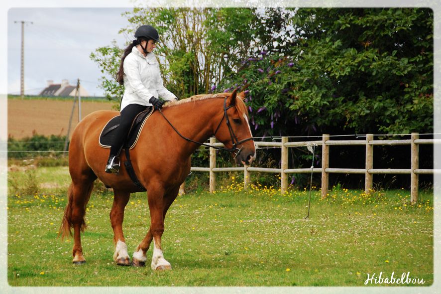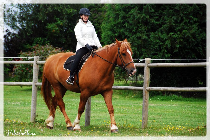 | Dire merci | Mais ce sont des chevaux très plyvalents (quand ils ne sont pas obèses )Sherpa progresse sur la route qui le mène à son avenir de cheval de selle. Il semble avoir renoncé à son "naaaan tu ne me monteras pas dessus" et passe au "Ze veux pas trotter d'abord". C'est plus facile à gérer, suffit de bourriner dedans! |