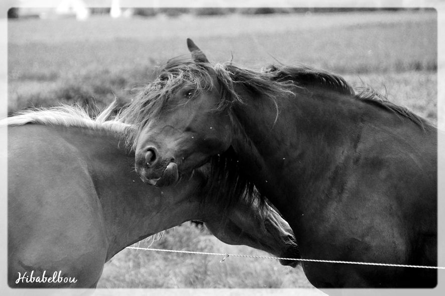 | Dire merci | Allez, des news, faut bien compenser un peu avec le post de Belline. ![]() Du côté du Poupounet magique, ça roule gentiment. Il a toujours un niveau raz des pâquerettes, mais il progresse... c'est juste pas très spectaculaire! Par contre il tire la tronche quand je le monte, c'est dingue. Enfin cette semaine surtout, c'était flagrant, mais je me demande si le fait qu'on se soit occupées d'Iris aussi n'ait pas joué (je dis on parce que j'étais avec une copine qui devrait devenir la cavalière d'Iris si tout se passe bien). Du coup, elle était dans le petit paddock pendant que je le montais sur le plat, et ça le motivait pas du toooout! Enfin c'est vraiment un sale gosse quoi. De même dans l'écurie avec Iris, je l'ai trouvé encore plus chiant que d'habitude. Il faisait tout pour se rendre intéressant. Il gigotait, il grattait, il tournicotait, il me regardait, il tendait le nez vers moi, il faisait les poches. Un vrai gamin. Bref, un ado! Dans une semaine, le club! ![]() |