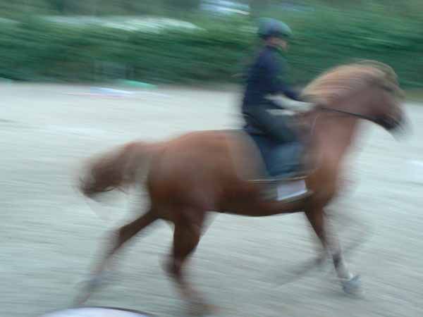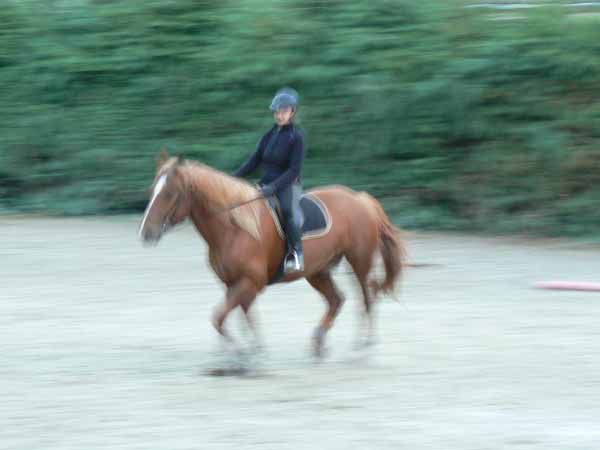 | Dire merci | Il est drôlement beau en ce moment, qu'est-ce que ça va être quand il sera plus travaillé ! C'est sûr qu'il ne se donne pas encore beaucoup, tes encouragements sont abondants Normal que tu aies du mal à être bien dessus, j'ai toujours trouvé qu'un galop un peu laborieux comme ça, ce n'est pas facile à suivre ! |