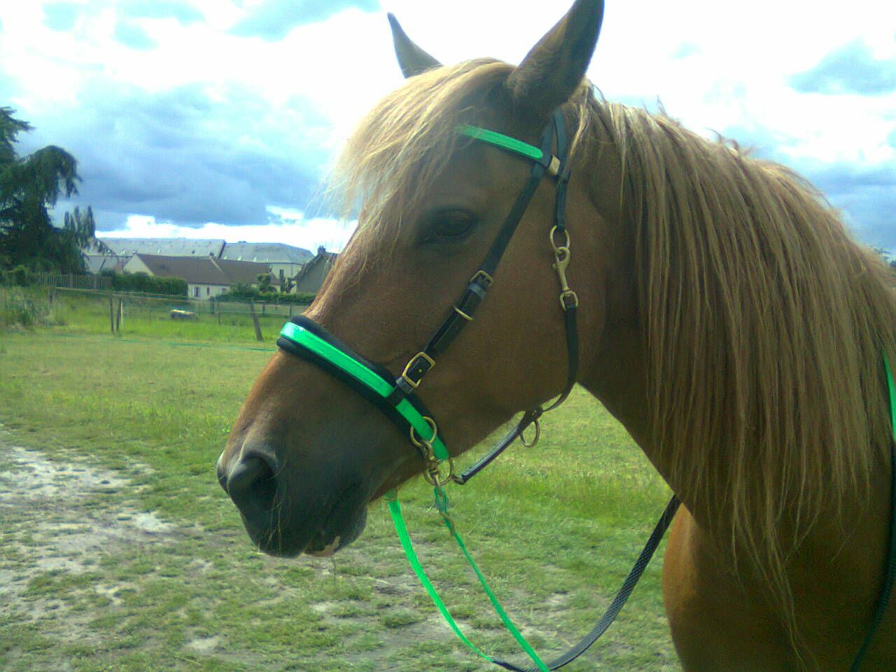 Déconnecté | Je ne l'ai plus. Mais oui c'est le même, donc pas vert fluo, ça n'ira pas avec le bridon. |