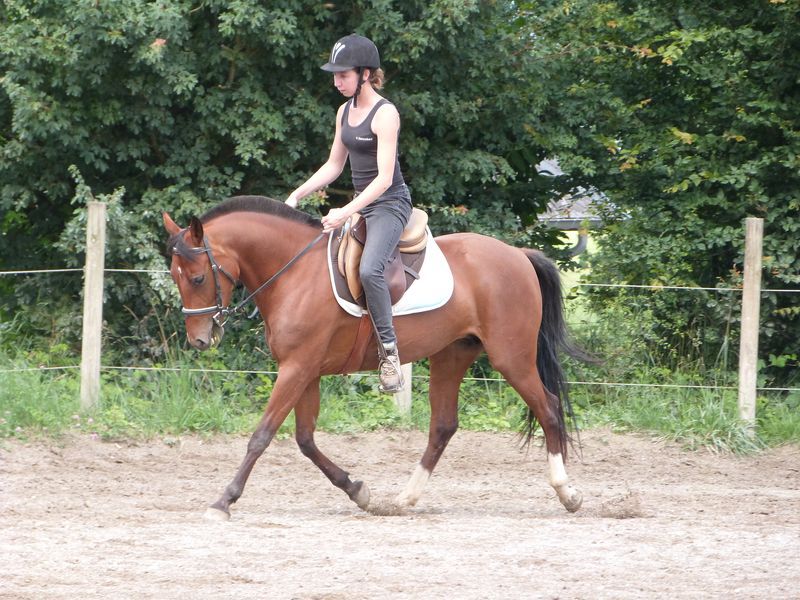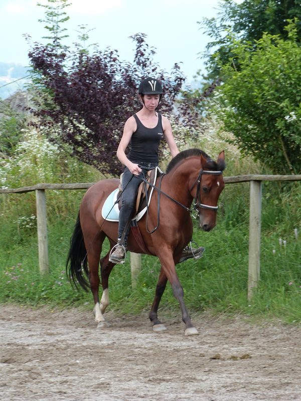 | Dire merci | Ca n'intéresse pas grand monde, mais je continue à donner des nouvelles de tout notre petit monde! * Déjà une super nouvelle pour Tina!! Elle bosse tellement bien, et est tellement belle, qu'elle a tapé dans l'oeil des gérants de la pension où elle est actuellement. En sachant qu'on ne voulait pas la vendre, ils nous ont proposé de la prendre au pair pour leur fille de 11ans! Donc Tina a une nouvelle petite cavalière! Du coup elle reste à la pension, elle va faire pas mal de balades, randos, cours particuliers, concours (surtout endurance et trec). Elle est déjà partie aujourd'hui en rando pour la semaine! Hier soir J. l'a essayé en carrière, ça s'est super bien passé! Et moi je vais continuer à la monter une fois par semaine, pour qu'elle ne prenne pas de mauvaises habitudes avec une jeune cavalière, et qu'elle continue à progresser dans le travail. * Denver: je commence à le remonter en balade! Ca fait trop plaisir de le remonter! Il est génial! Hier on est parti en balade toute la journée: 1h le matin, grande pause pique nique, et 1h pour le retour. Il s'est super bien comporté! * Cowboy: on a fait un petit essai de balade samedi pour voir comme il se comporte, il était super, du coup hier mon chéri l'a pris pour la balade pique nique. Il a été vraiment exemplaire!! * Sonny: je profite de mes vacances pour le monter plus souvent. Je vais essayer de le monter tous les jours quand j'ai le temps. Pour le moment, ça se passe super bien! Et tous les autres vont bien! |