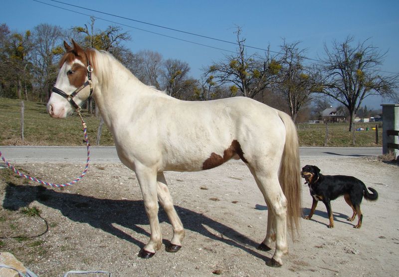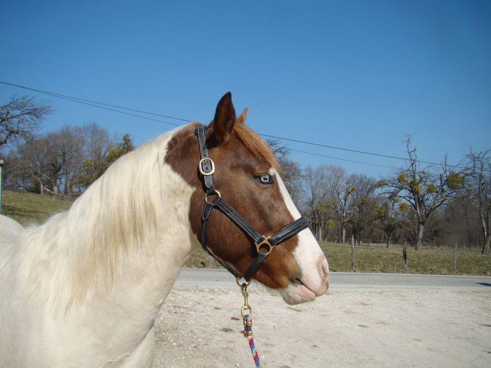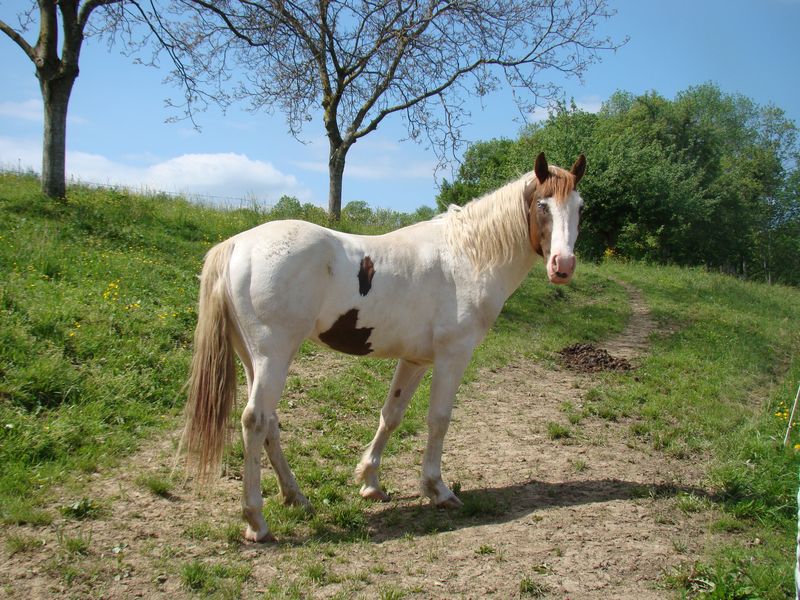 | Dire merci | Ba alors ils sont pas beaux mes chevaux??? Bon je continue avec Anka. Pouliche de 2ans, de père Paint et mère Appaloosa, arrivée l'année dernière, complètement sauvage, jamais manipulée, totalement dominante, la totale...! Après quelques remises au point, elle est devenue une pouliche adorable! La plus caline de tous je pense, une vrai pot de colle! A son arrivée l'année dernière ![]() Ce printemps ![]() ![]() Message édité le 26/07/12 à 20:47 |