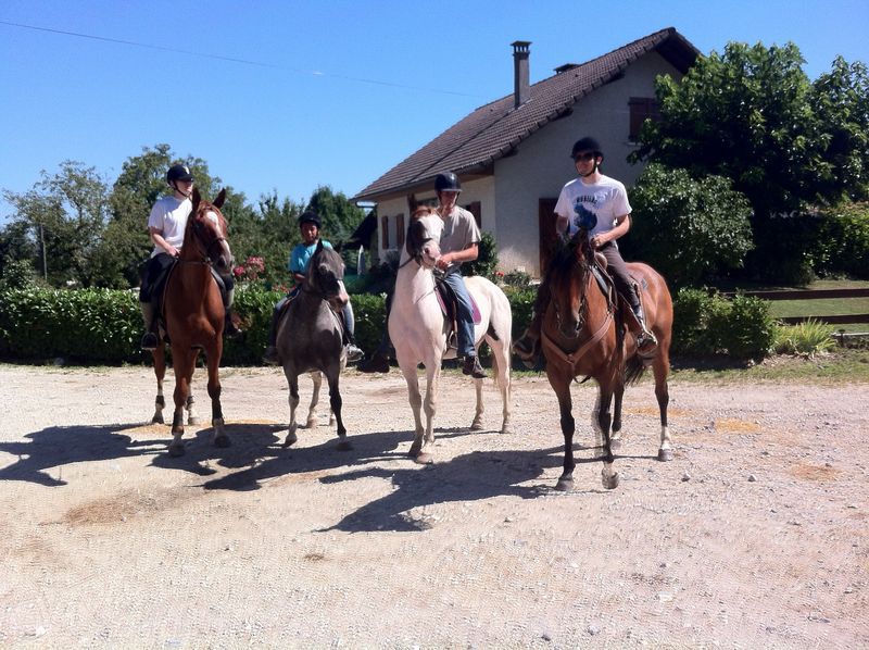 | Dire merci | 2 petites photos d'un retour de balade aec une bonne partie de notre troupe équine!![]() De gauche à droite: Marie74 sur Denver, le neveu de mon chéri sur Dakota, mon chéri sur Cowboy et le chéri de Marie74 sur Quenya. Et il manque Sonny sur la photo que je montais moi! Marie a eu l'énorme privilège de monter mon Denver!!! ![]() |
