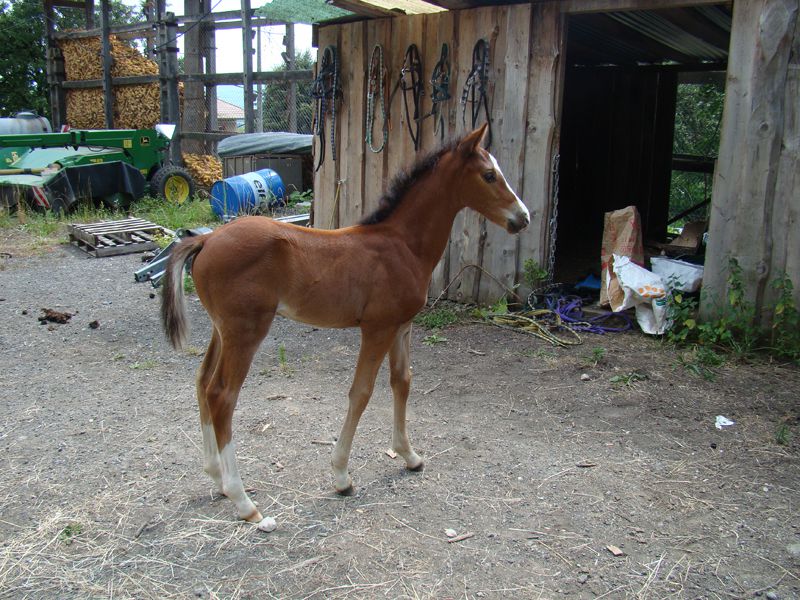| Dire merci | L'année dernière Sonny avait saillit Quenya et Tina, mais malheureusement nous n'avons pas de poulains de lui cette année... Quenya n'a pas pris, et Tina a avorté d'une très belle pouliche 1 mois avant le terme... Le seul poulain de Sonny cette année est née d'une jument extérieure qui était venue à la saillie. C'est un superbe poulain smocky black tobiano! Mais nous avons quand même une naissance cette année! Loneke nous a offert un magnifique poulain alezan capé tacheté! Il s'appelle Flash Mc Queen! ![]() ![]() Il faut que je refasse des photos il a énormément changé depuis! Sa couleur a beaucoup évolué...!! |