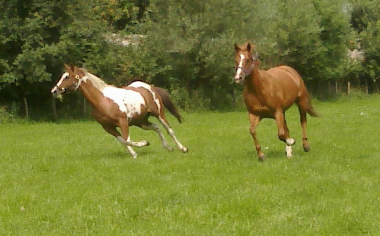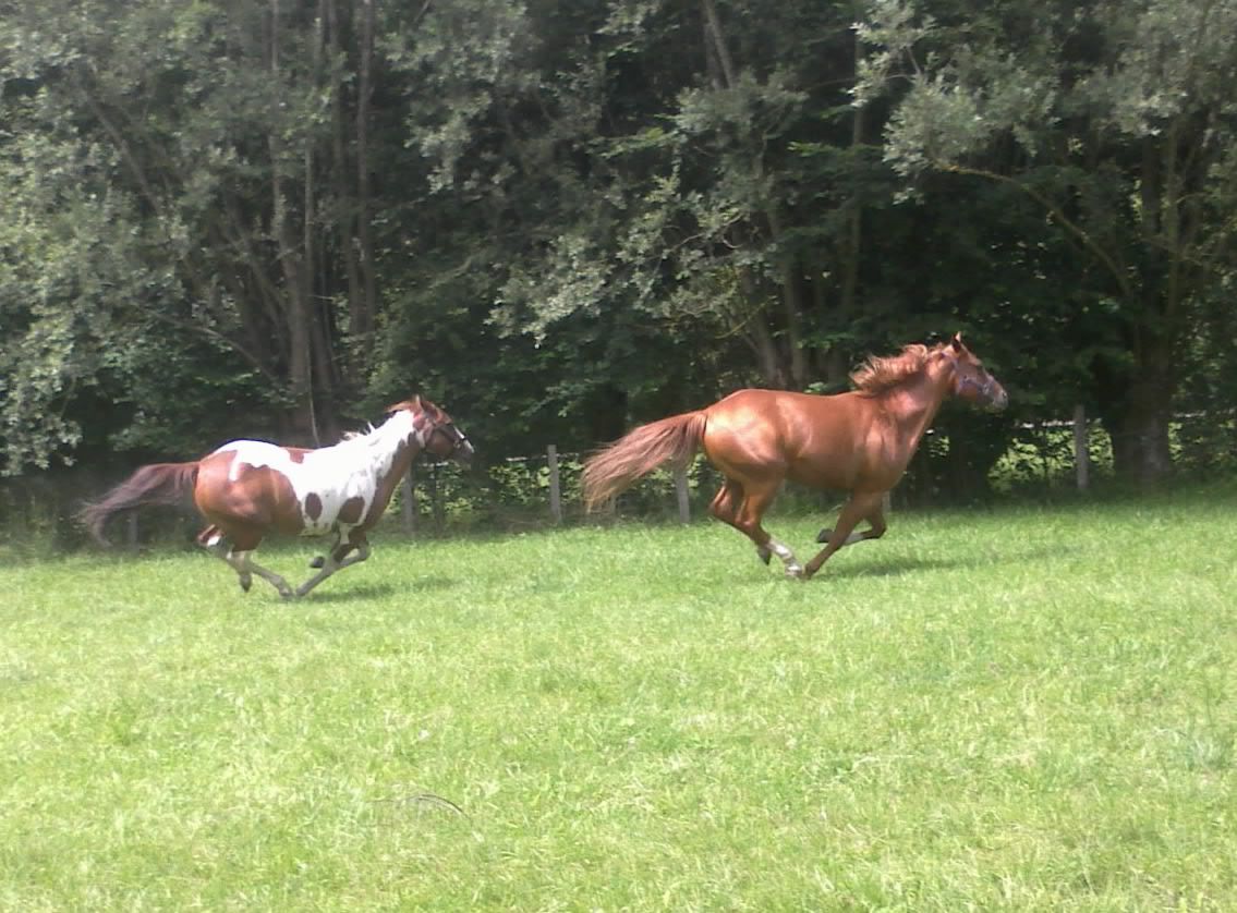 | Dire merci | Mes deux amours, lors du premier lacher a l'herbe ce printemps ! ![]() |