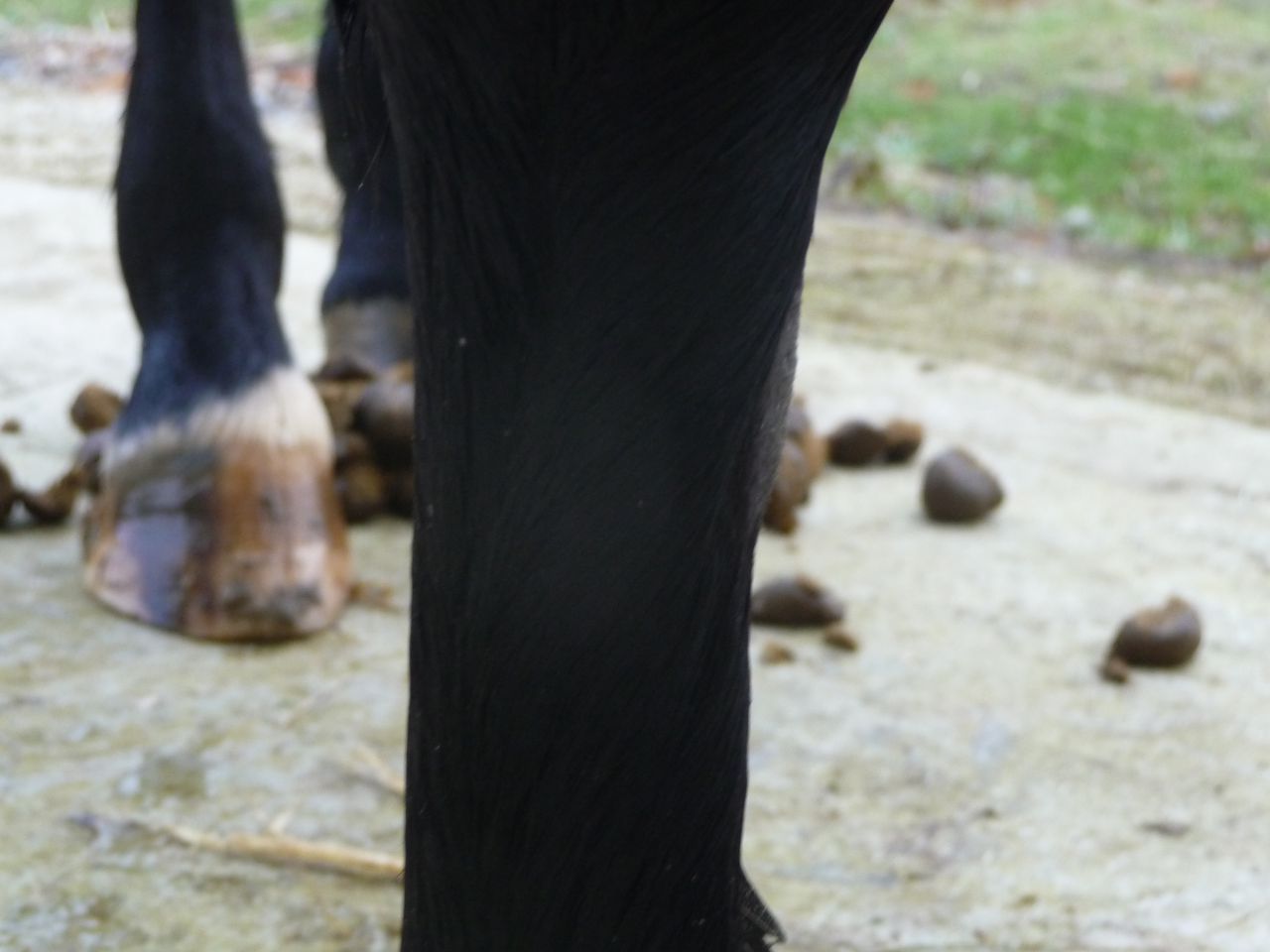 | Dire merci | comme je l'avais expliqué plus haut, Sépia avait un gros suros depuis son matraquage par la jument que j'avais en pension. Ce suros l'avait fait boiter à la course, alors qu'on pensait que le suros touchait les tendons, ce serait plutot une micro fracture où sans doute un peu d'arthrose se serait mise d'après l'ostéo mais c'était peut etre aussi la micro fracture qui n'avait pas bien cicatrisé et qui a révélée des douleurs avec l'effort intense de la course ![]() après 2 mois de repos total, le suros avait dejà diminué mais restait assez gros (pas de photo après ces 2 mois) mais pas totalement, donc je décide de tester la creme stop'tare dont j'ai eu de bons échos sur des forums on a commencé le traitement mardi matin (2 applications par jour pendant 3 semaines), et honnetement il a deja bien diminué, la partie tondue attire l'oeil mais la "bosse" est bien moins choquante !! photos du lendemain du coup (dsl pour la qualité j'ai agrandi le peu de photos que j'avais), le suros est sur la face interne du canon de l'antérieur gauche ![]() ici photos de après la course (suros toujours aussi gros ), on se rend peut etre pas bien compte avec l'argile qui met tout à plat et gonfle les poils autour des tendons ... de dos donc suros sur l'antérieur à droite sur la photo ![]() ![]() ![]() |