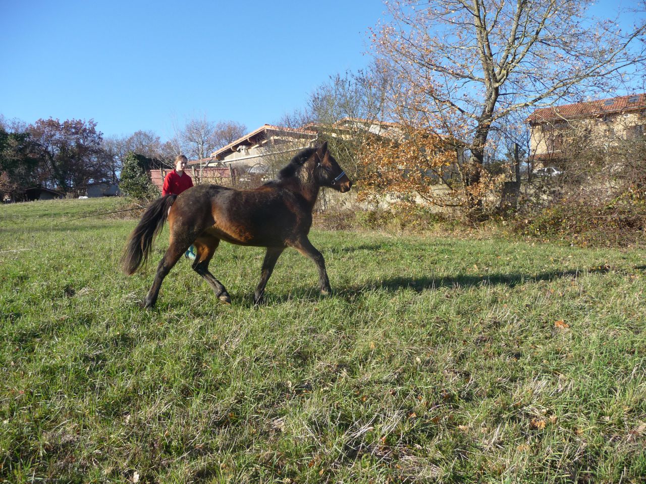 | Dire merci | Cette petite ponette a débarqué dans mon centre equestre un lundi 5 novembre 2009 tout droit sortie de chez un marchand avec 3 autres poneys. Ce jour là, mes moniteurs étaient allés chez un marchand voir des poneys pour agrandir leur cavalerie. En effet ce marchand venait de recevoir des poneys qui arrivaient d'une longue traversée. Les premiers venaient de Hollande et des poneys se sont aussi ajoutés en Belgique avant d'arriver chez ce marchand, dans le sud ouest de la France. Donc ils vont voir ces poneys au pré et en choisissent 3 pour le club, et ils voient cette petite ponette toute maigre avec une longe de 3 mètre attachée au licol pour pouvoir l'attraper. Mis à part son piteux état, c'est une très joli ponette plein papier qui vient de Hollande, il la prennent donc dans le lot dans le but de la retaper puis de la valoriser pour ensuite soit la vendre soit la mettre à la saillie. C'est donc ce mercredi pluvieux qu'était le 7 novembre que je l'ai rencontré pour la première fois. Elle était alors agée de 3 ans. ![]() ![]() avec les 3 autres poneys achetés chez le marchand ![]() Ce message a été modifié par un modérateur. |