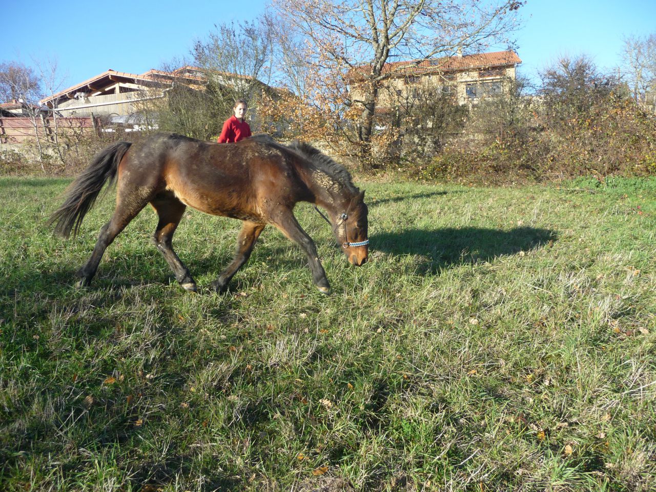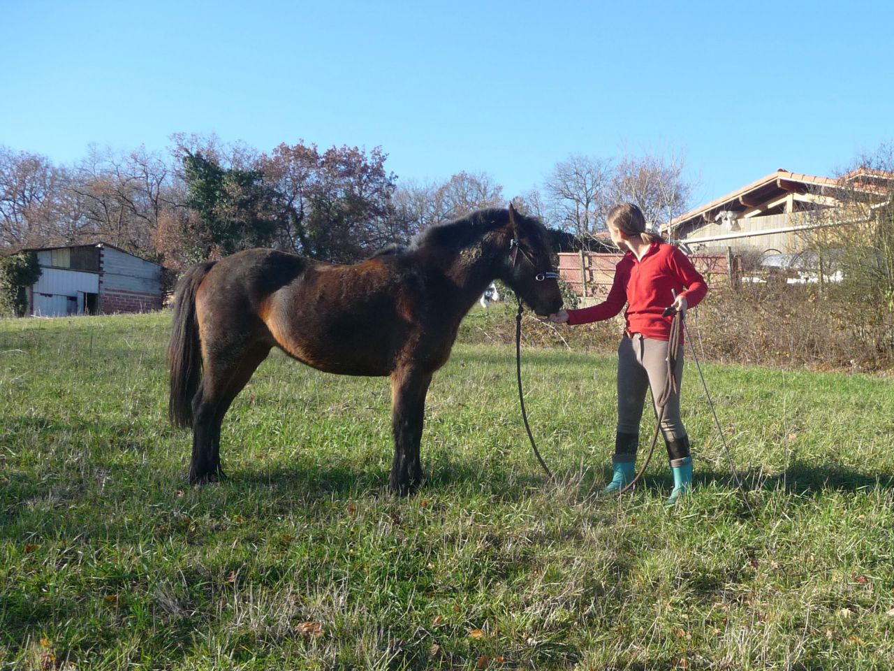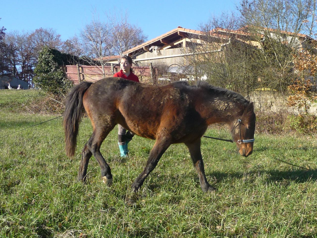 | Dire merci | ah bé c'est bien cette petite longe ça a du lui faire du bien ! elle est gentille ta mamie de venir te prendre en photo en plus le temps avait l'air de bien s'y prêter ! Par contre comme tu dis elle a l'air d'avoir perdu beaucoup de muscle, mais bon en douceur tu vas lui faire re prendre tout ça ! |